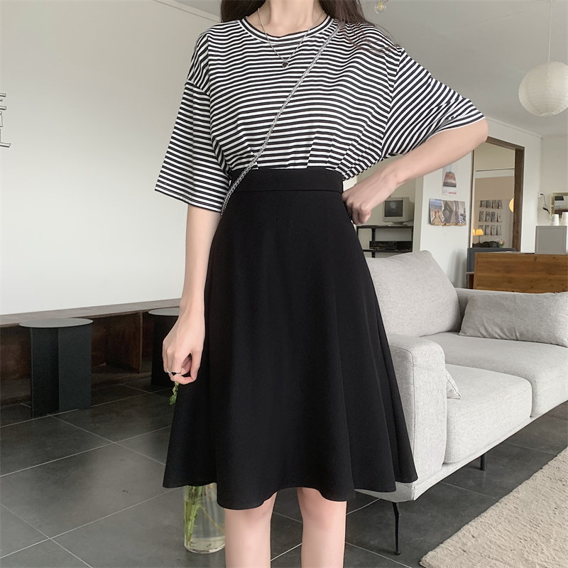 Черная длинная юбка, А-силуэт, высокая талия, юбка-пачка, большой размер