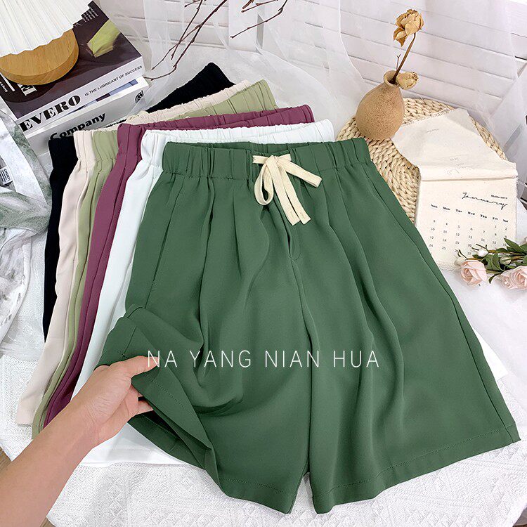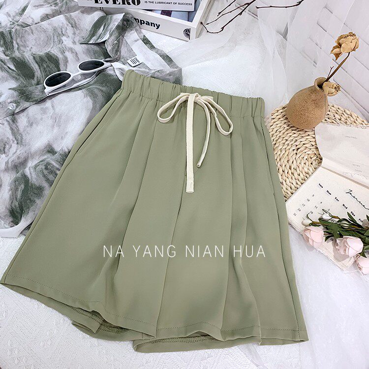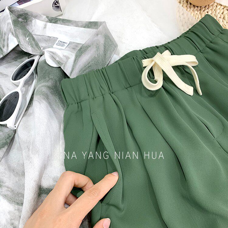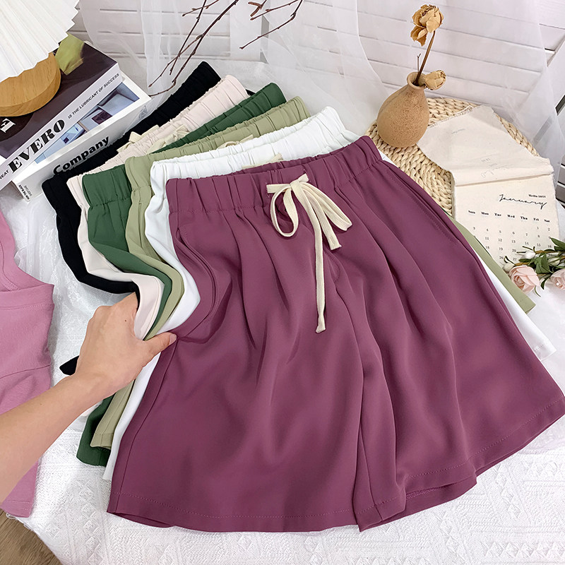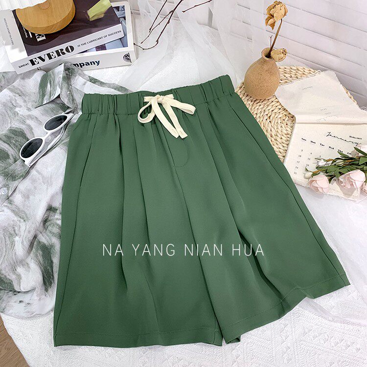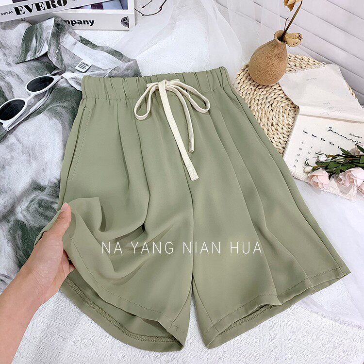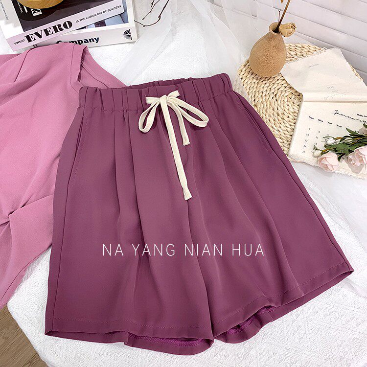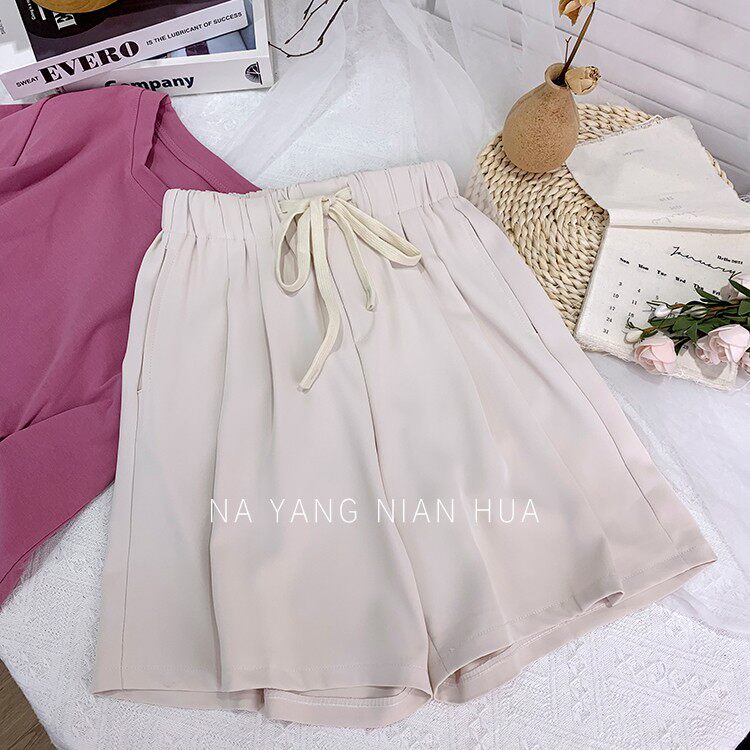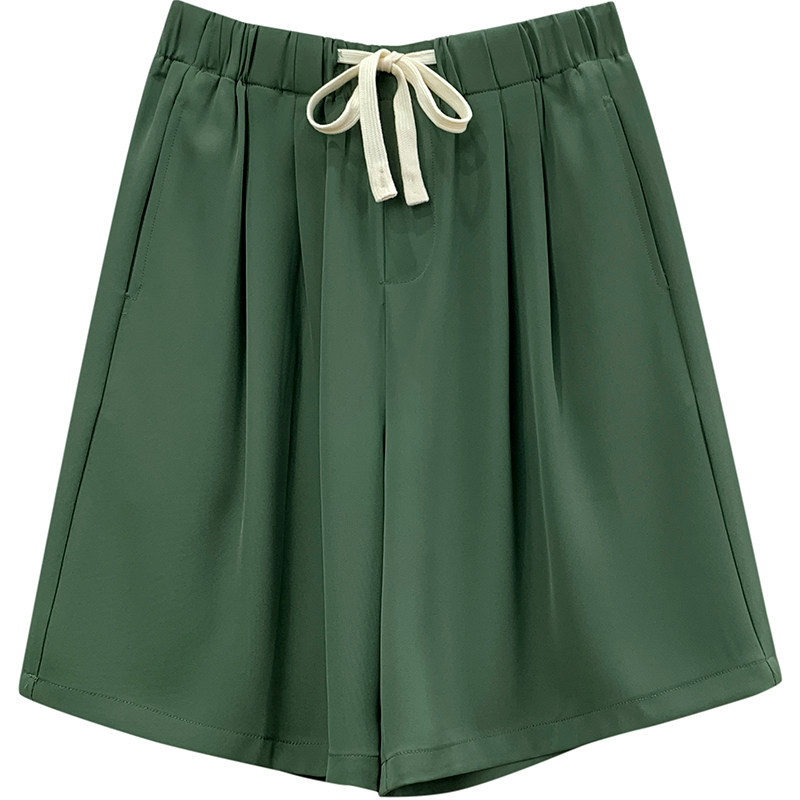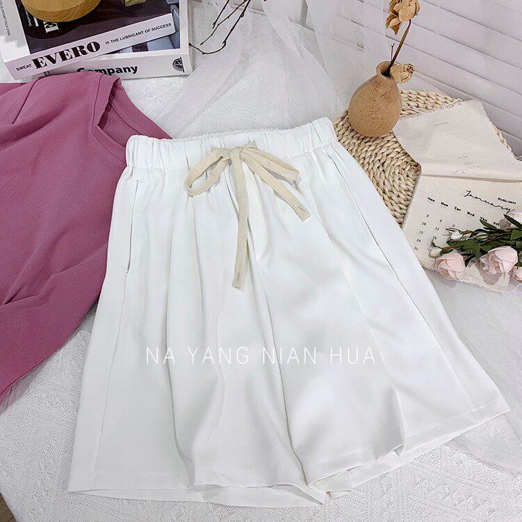 Дизайнерский шелковый костюм, шорты, шифоновые штаны, на шнурках, оверсайз, свободный прямой крой