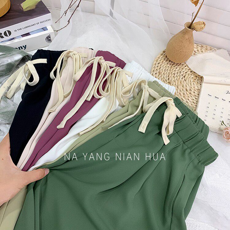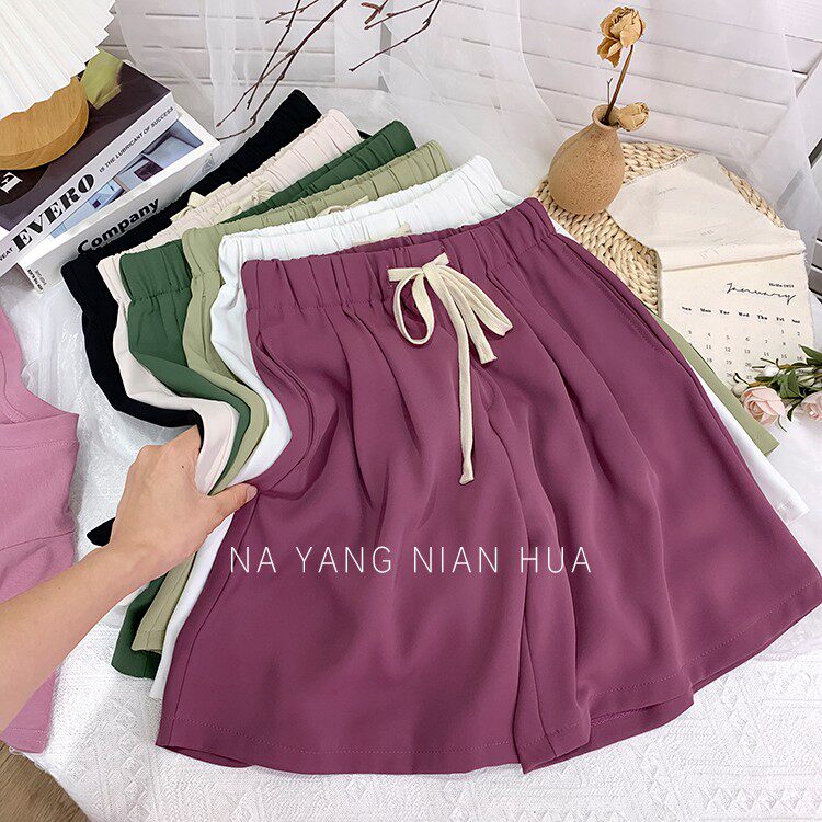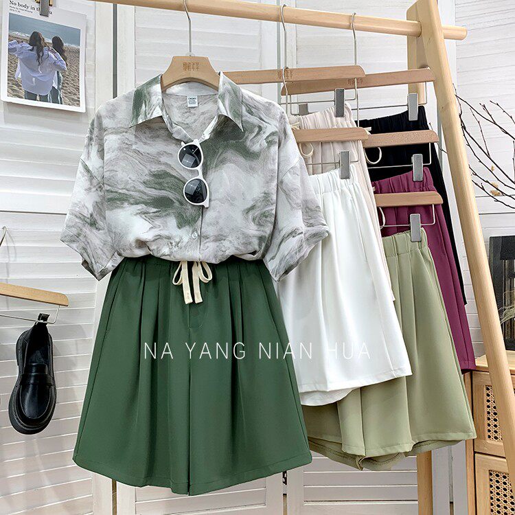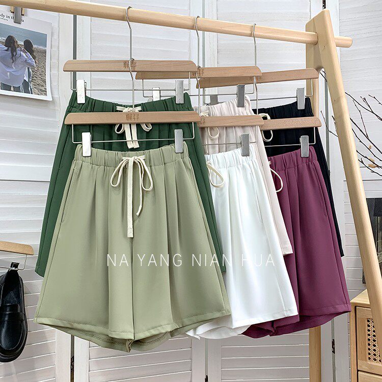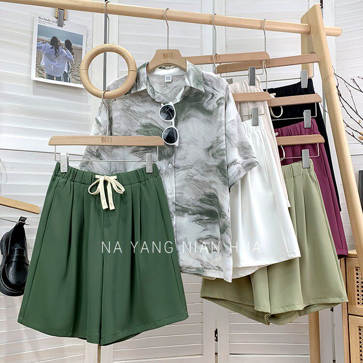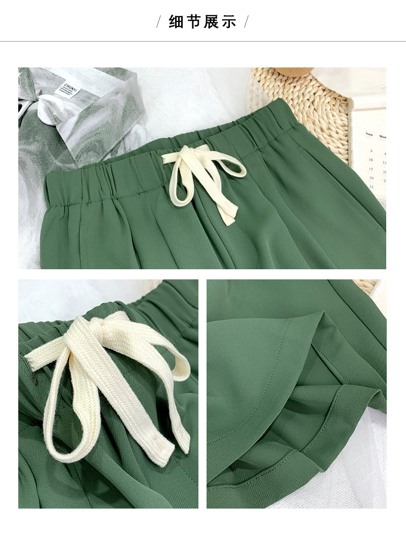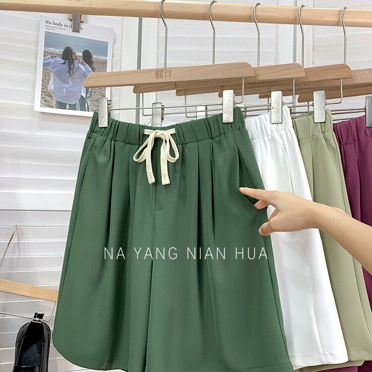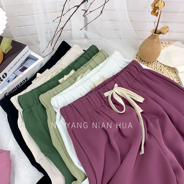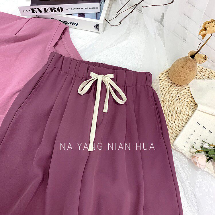 Дизайнерский шелковый костюм, шорты, шифоновые штаны, на шнурках, оверсайз, свободный прямой крой
