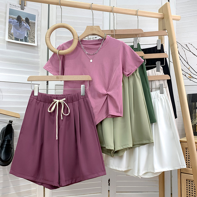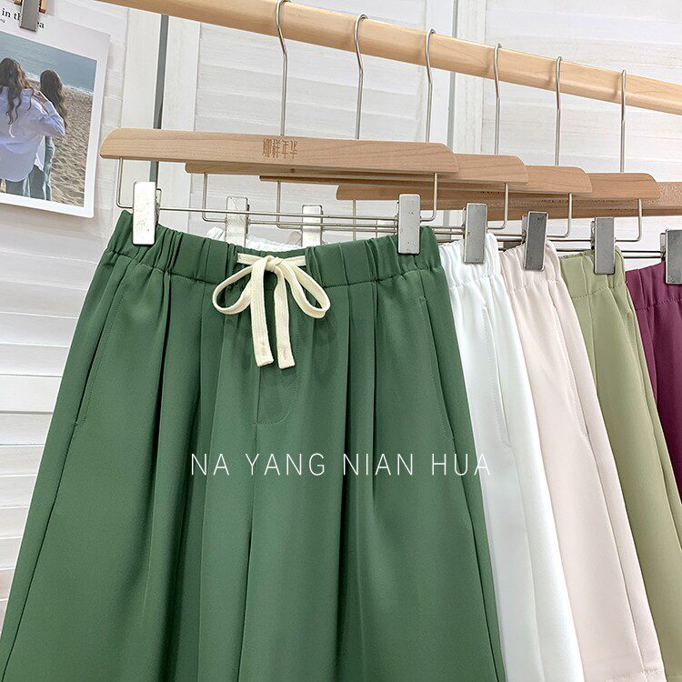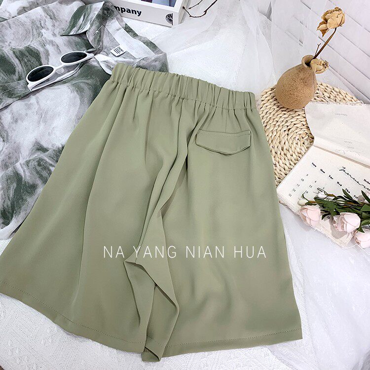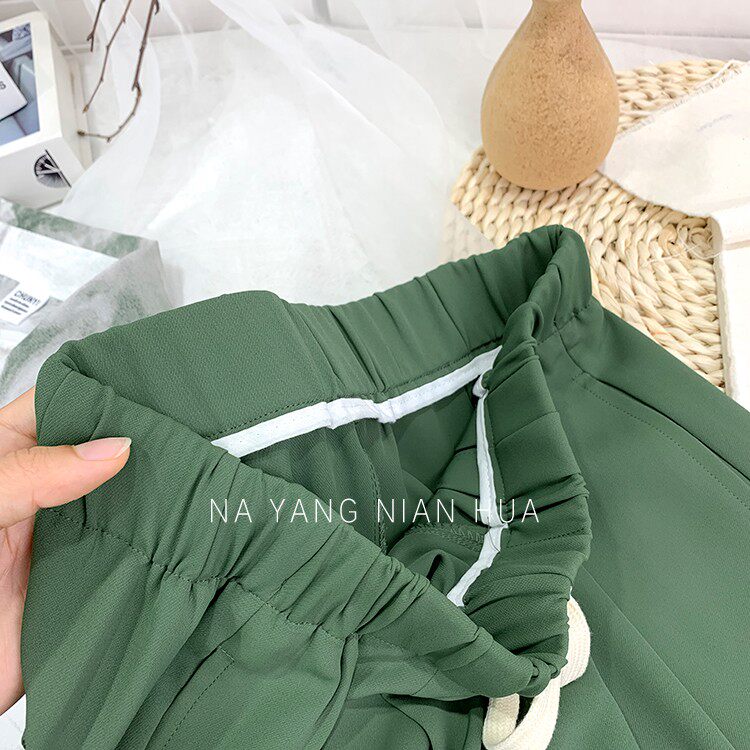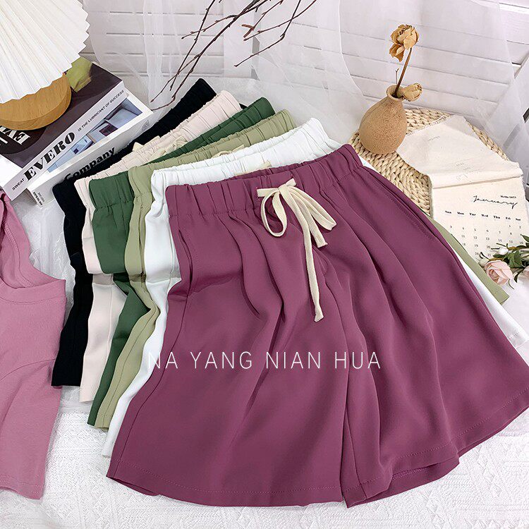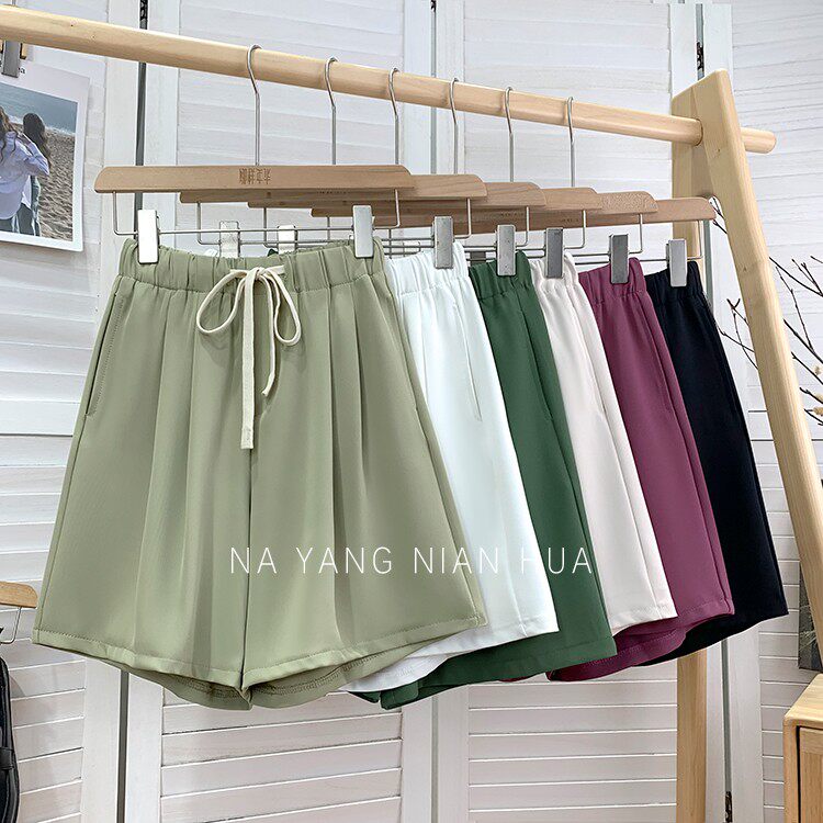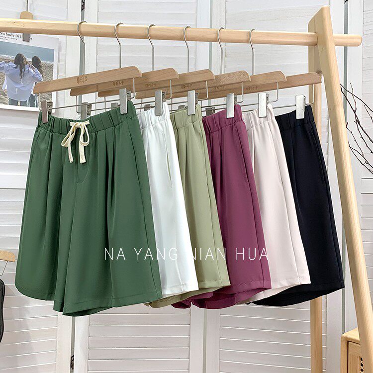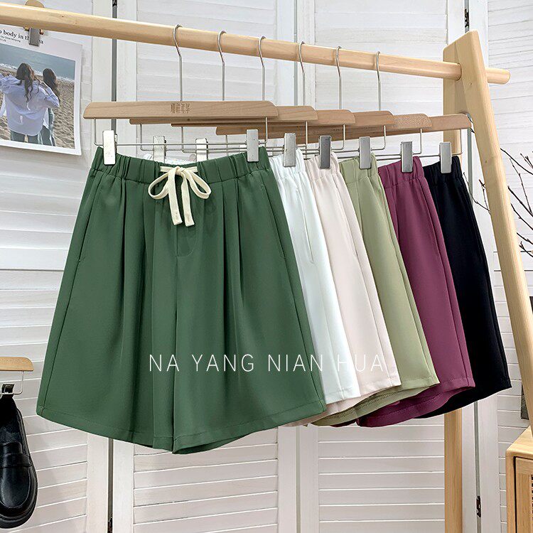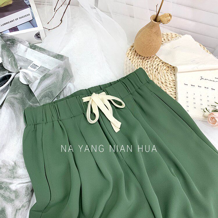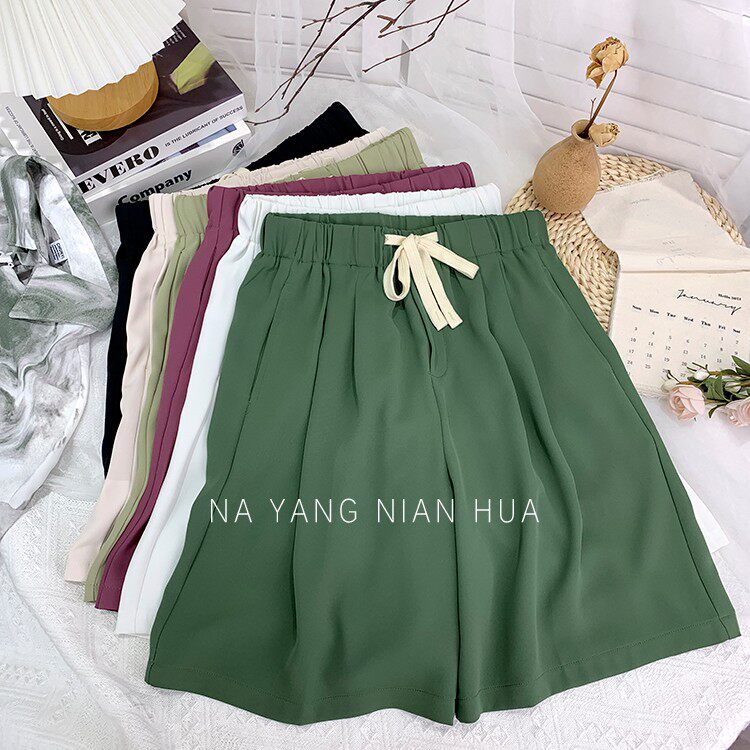 Дизайнерский шелковый костюм, шорты, шифоновые штаны, на шнурках, оверсайз, свободный прямой крой