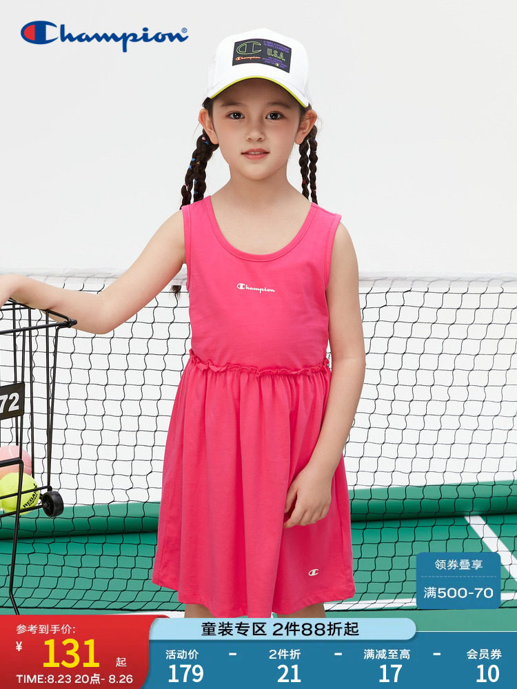 Чемпион официальный веб -сайт детская одежда 23 летняя новая дофамин в теннисном хлопковом платье в стиле тенниса
