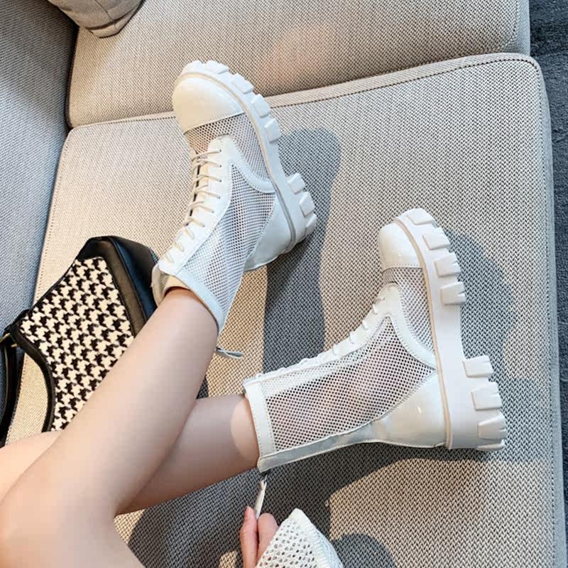 Martens, тонкие дышащие сетчатые модные белые летние короткие сапоги, универсальные ботинки