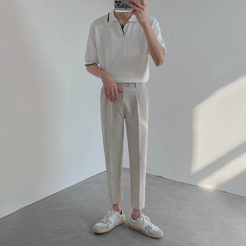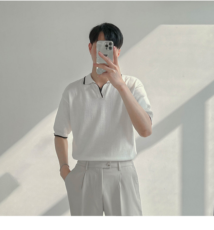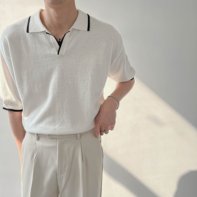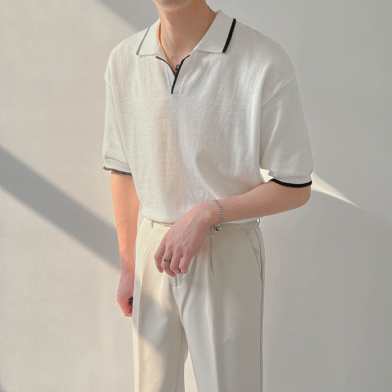 Тонкая трендовая летняя футболка с коротким рукавом, трикотажная футболка polo, в корейском стиле