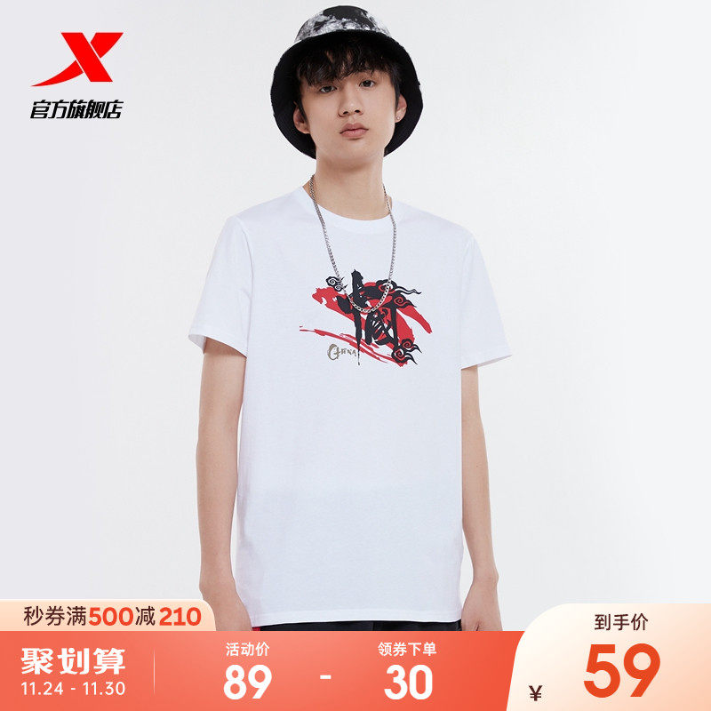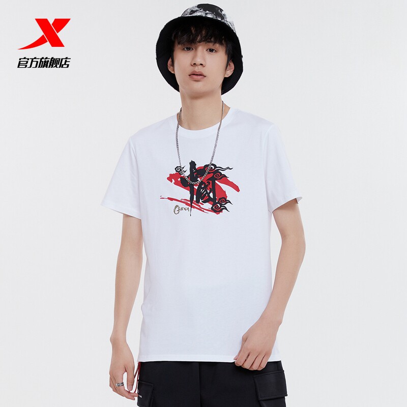 Xtep, летняя хлопковая футболка для отдыха, короткий рукав, оверсайз