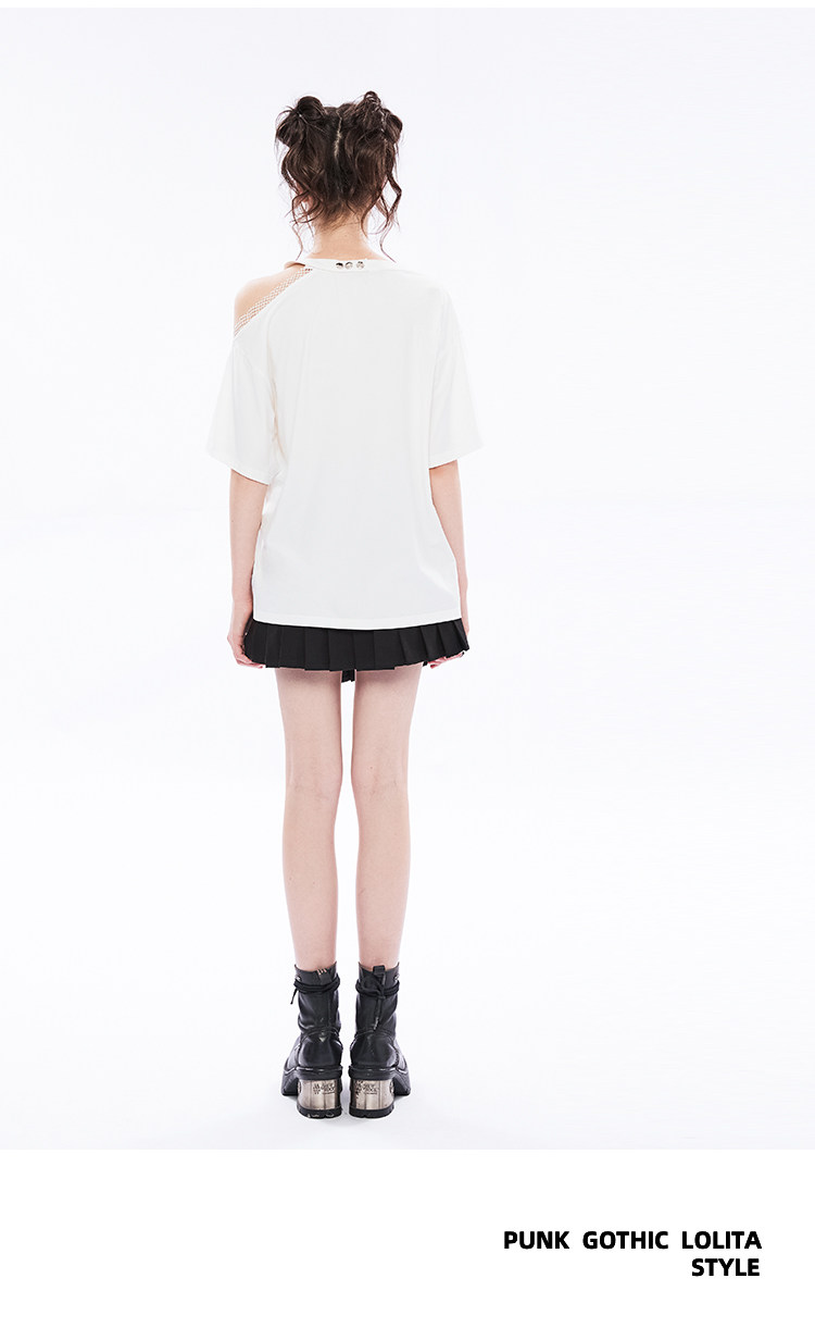 Летняя белая модная длинная футболка, в стиле панк, средней длины, свободный крой, в западном стиле