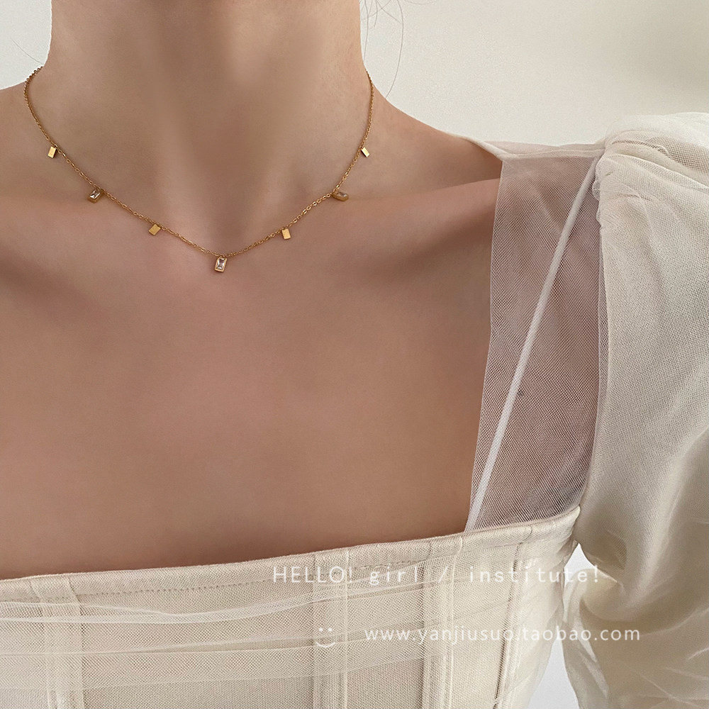 Изысканная золотая подвеска с цирконом, небольшая цепочка до ключиц, дизайнерское ожерелье, легкий роскошный стиль, тренд сезона