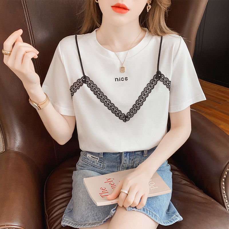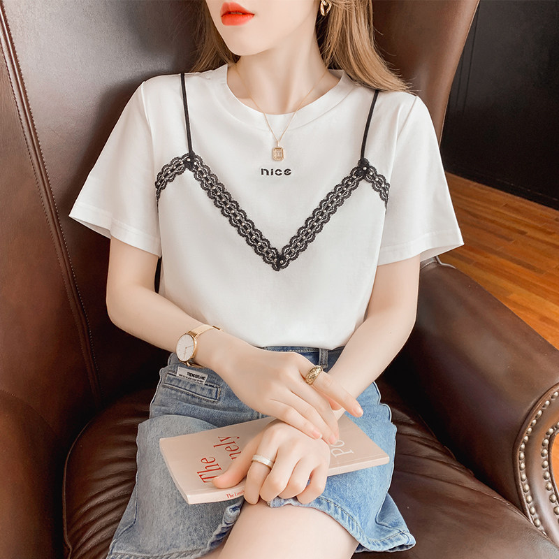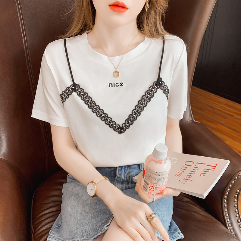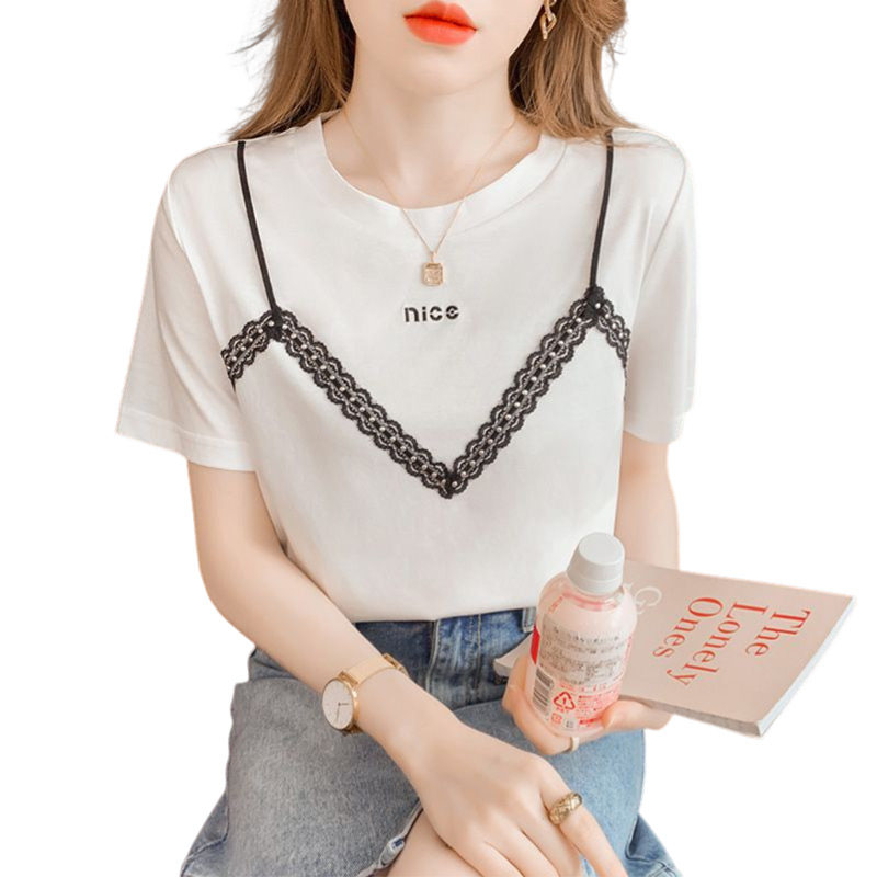 Модный комплект, летняя белая шифоновая футболка, короткий рукав, коллекция 2023