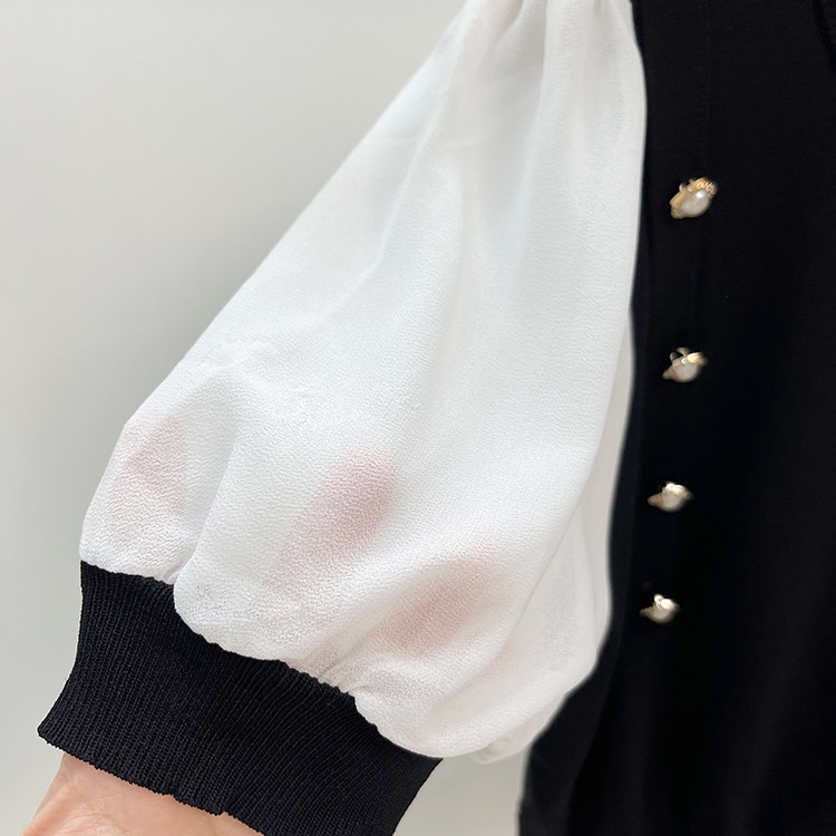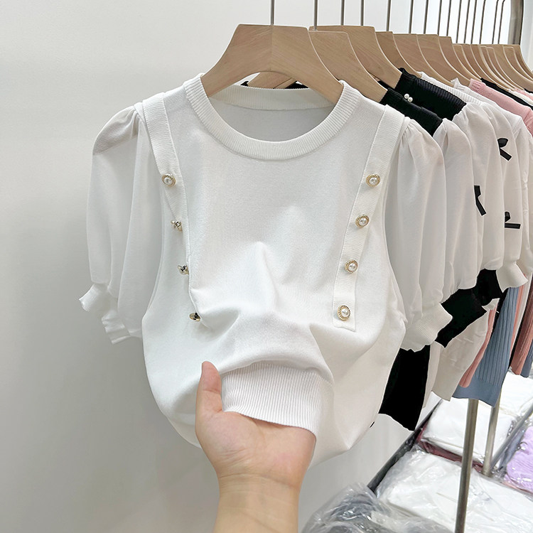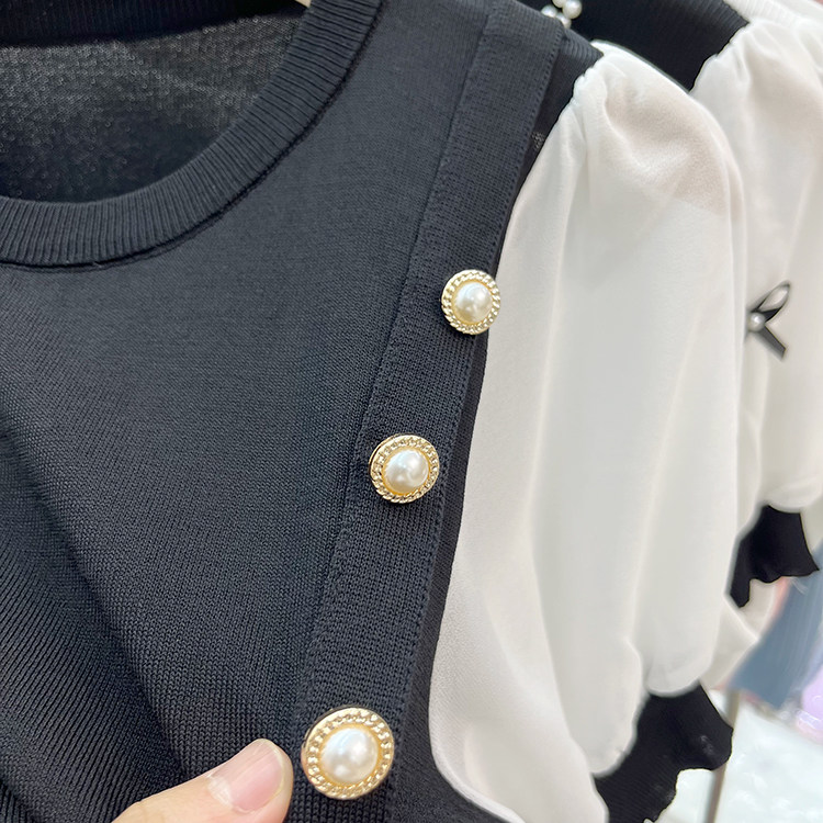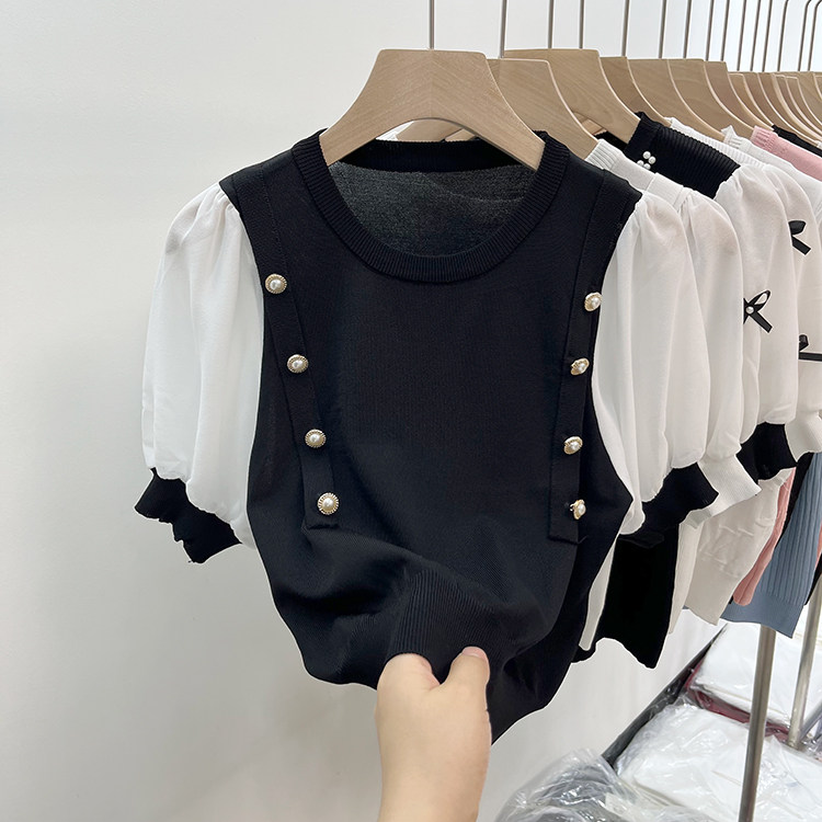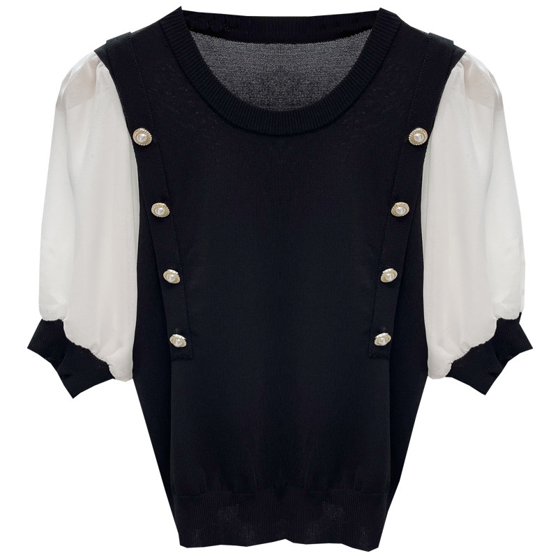 Трикотажный летний тонкий свитер, шифоновая футболка, рукава фонарики, подходит для подростков