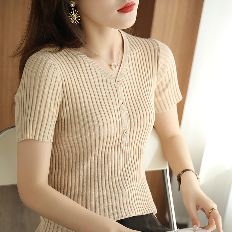 Хлопковый трикотажный свитер, летний комплект, футболка, 100% хлопок, облегающий крой, короткий рукав