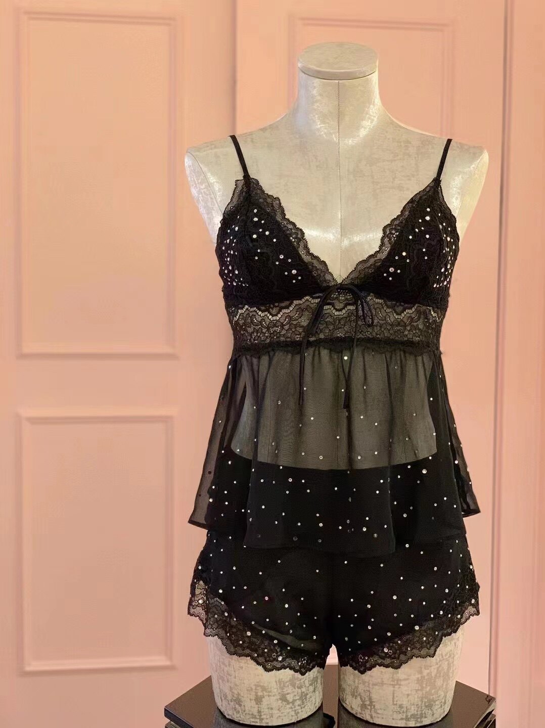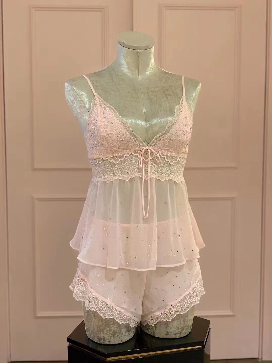 Кружевные шорты, раздельный комплект, пижама, эффект подтяжки