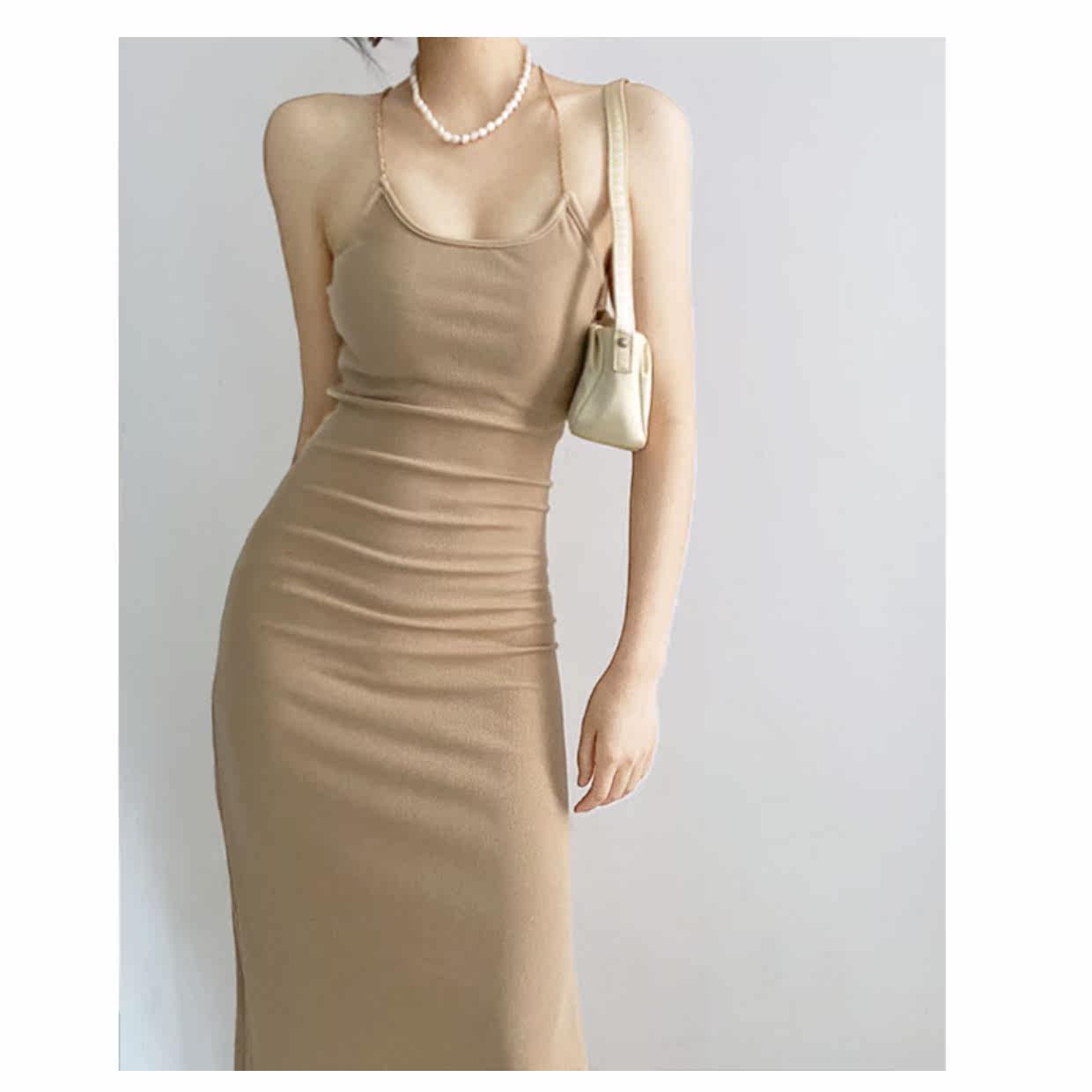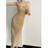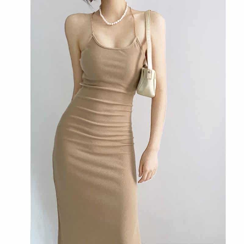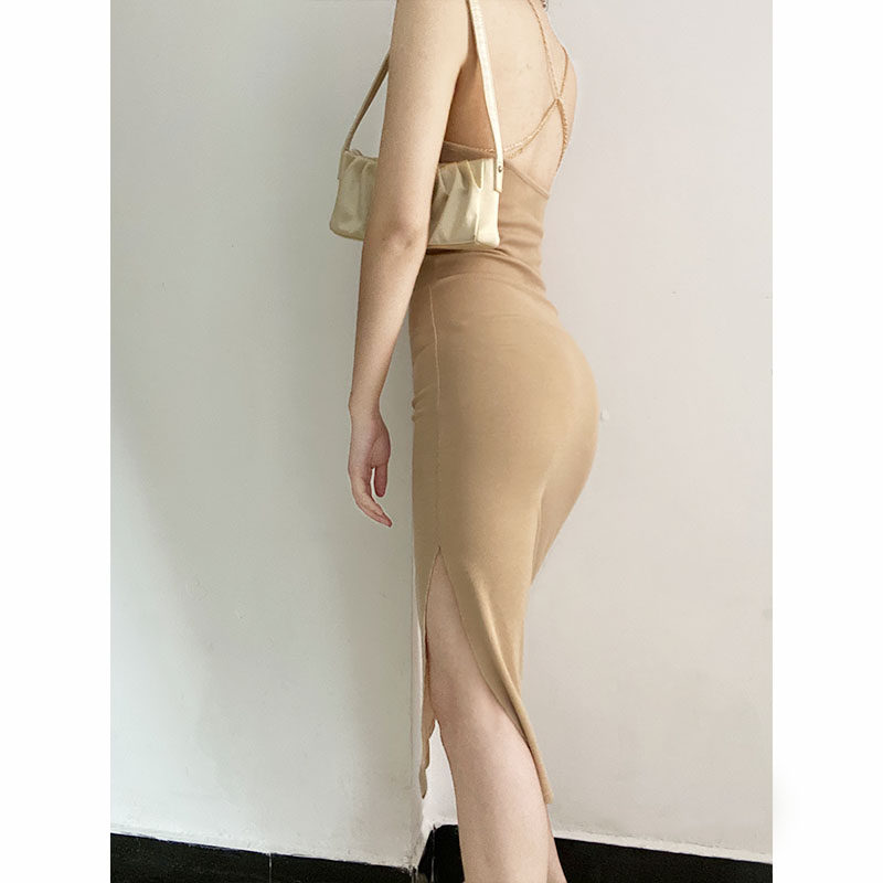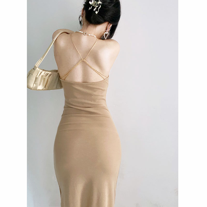 Цепь, сексуальная длинная юбка, трикотажное приталенное платье, с открытой спиной, яркий броский стиль, средней длины, городской стиль
