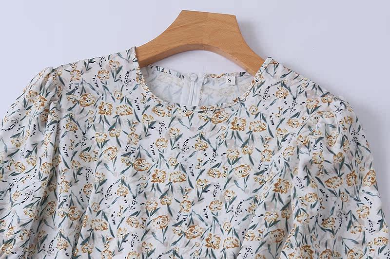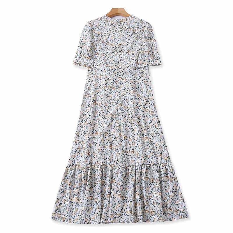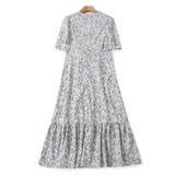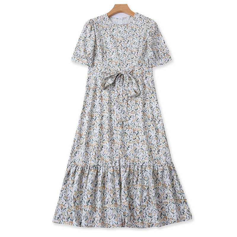 Летнее платье с круглым воротником, длинный приталенный корсет, юбка, цветочный принт, короткий рукав