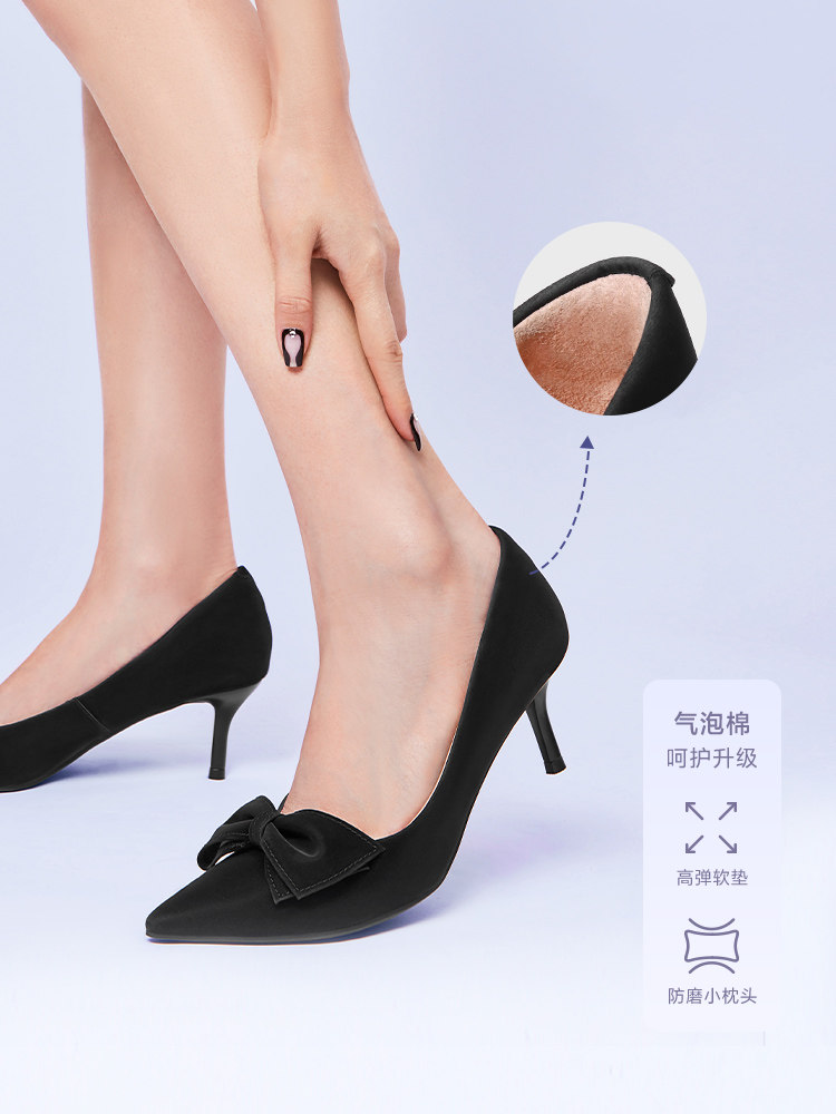 Туфли на высоком каблуке с бантиком с заостренным носом, универсальная обувь с низким вырезом, французский стиль