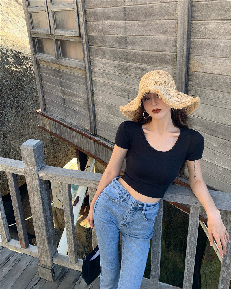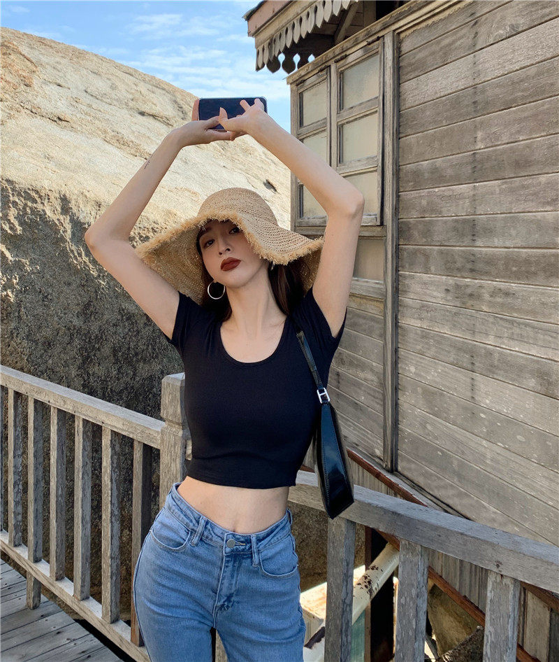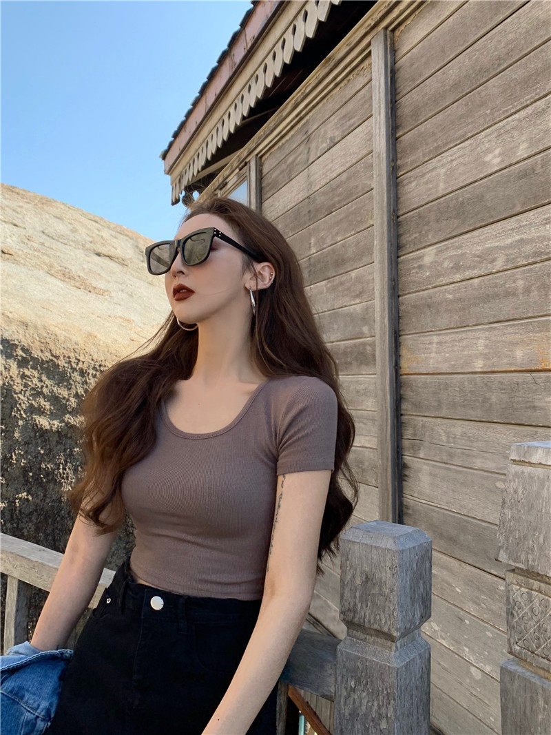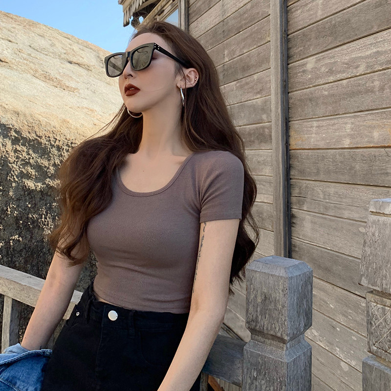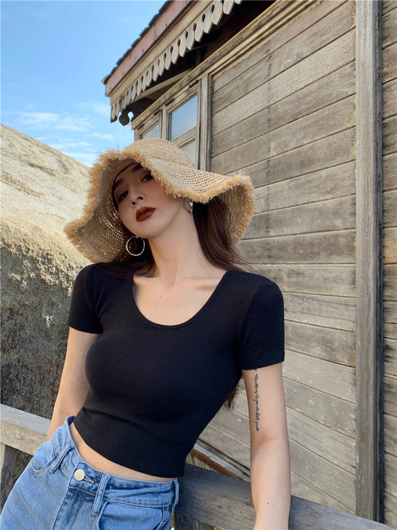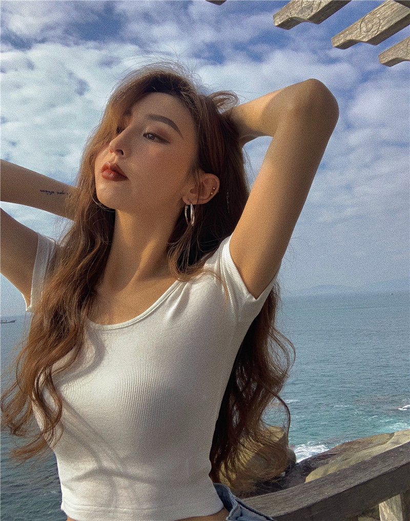 Белая короткая сексуальная футболка, короткий рукав, в обтяжку, высокая талия