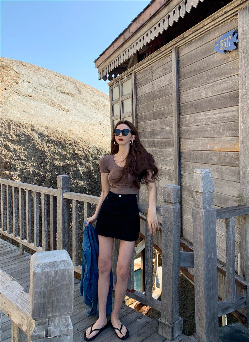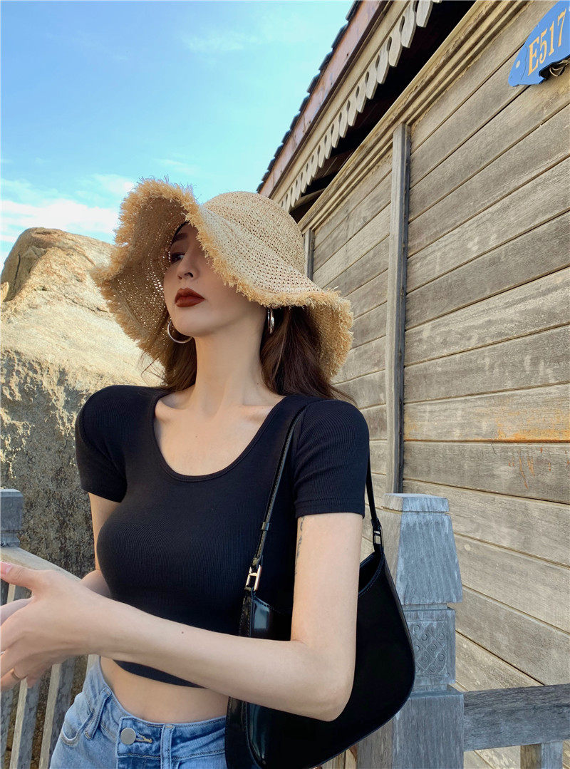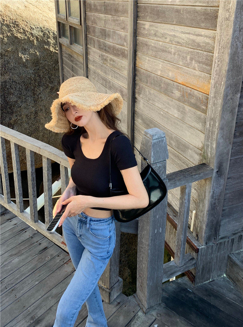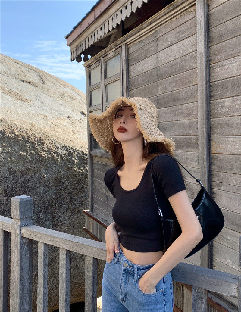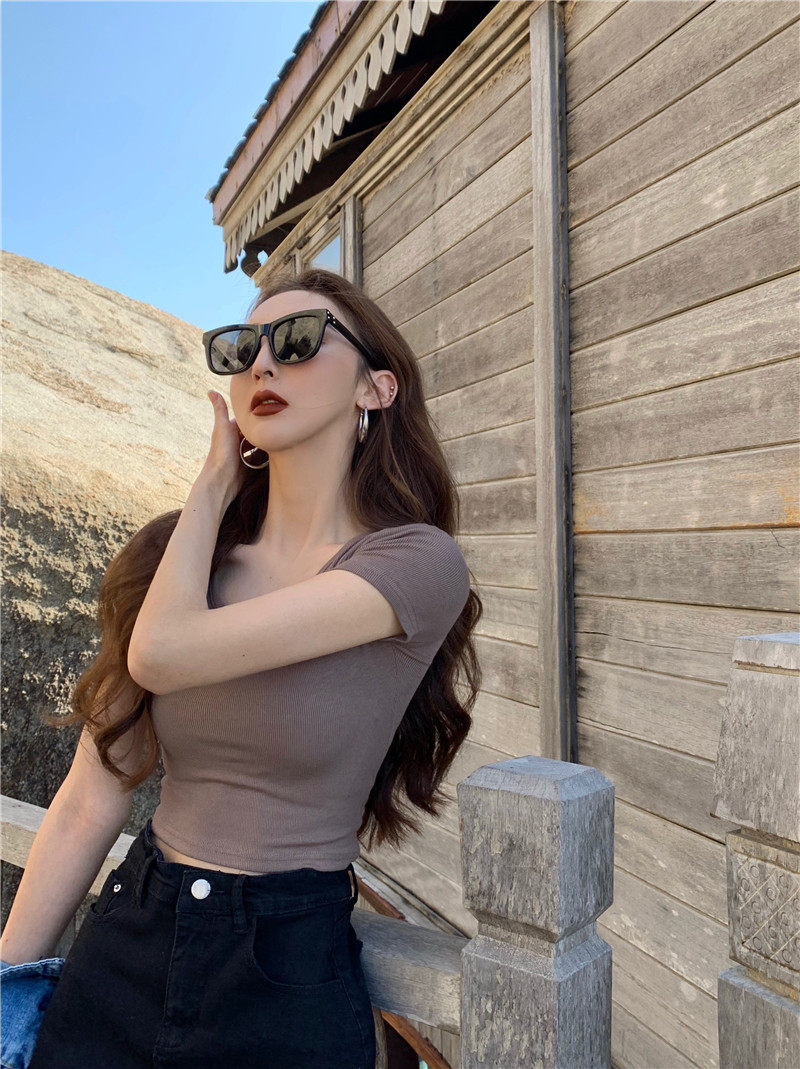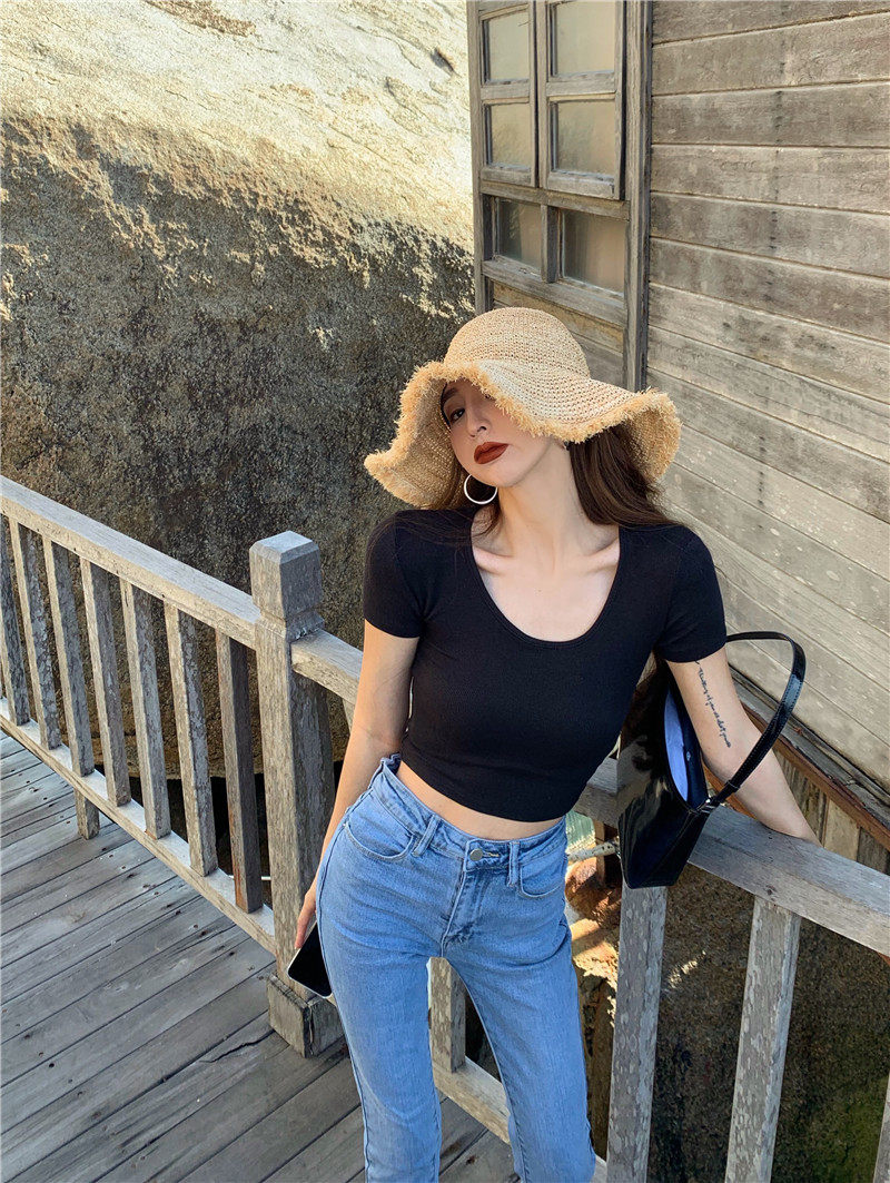 Белая короткая сексуальная футболка, короткий рукав, в обтяжку, высокая талия