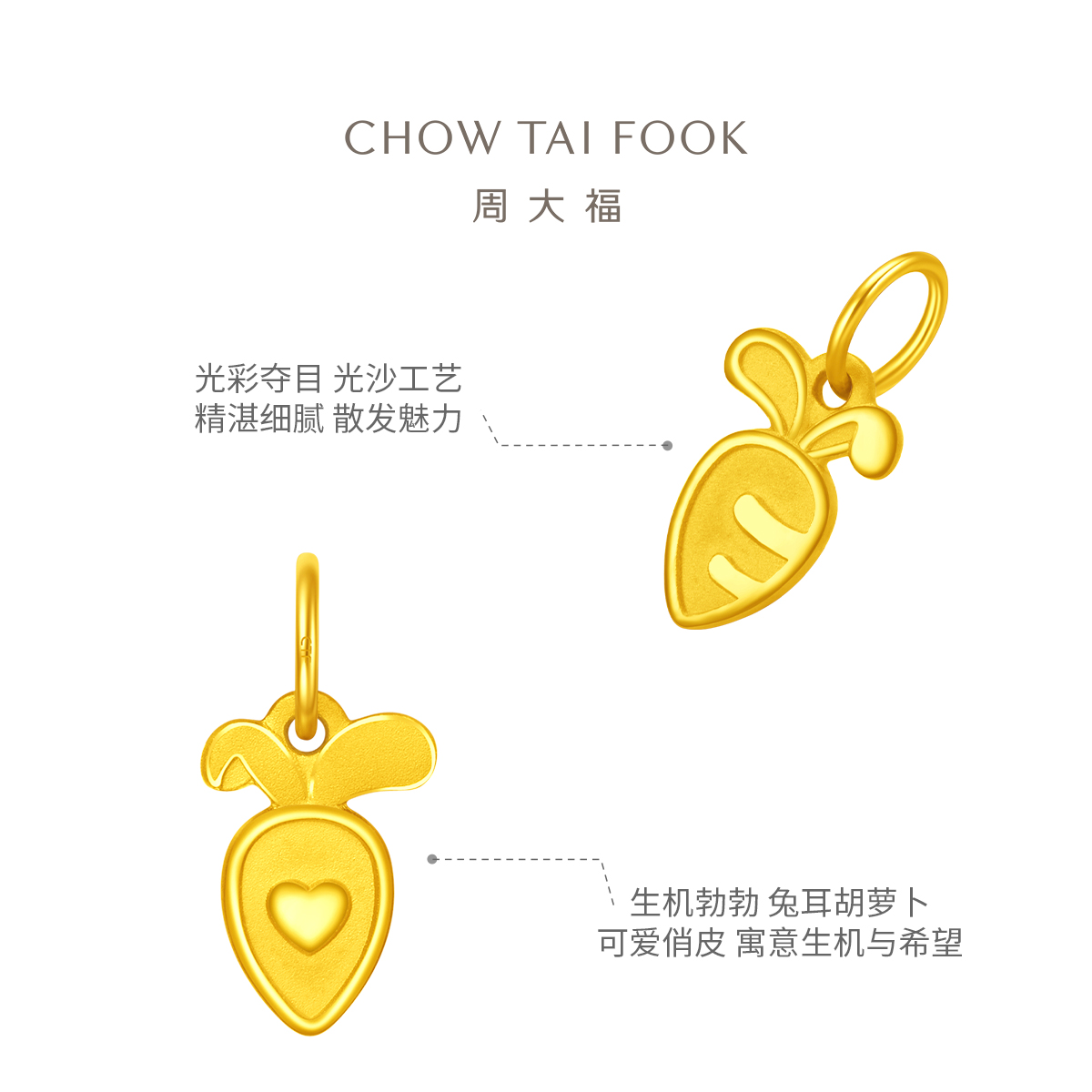 周大福 Морковная золотая подвеска, год кролика