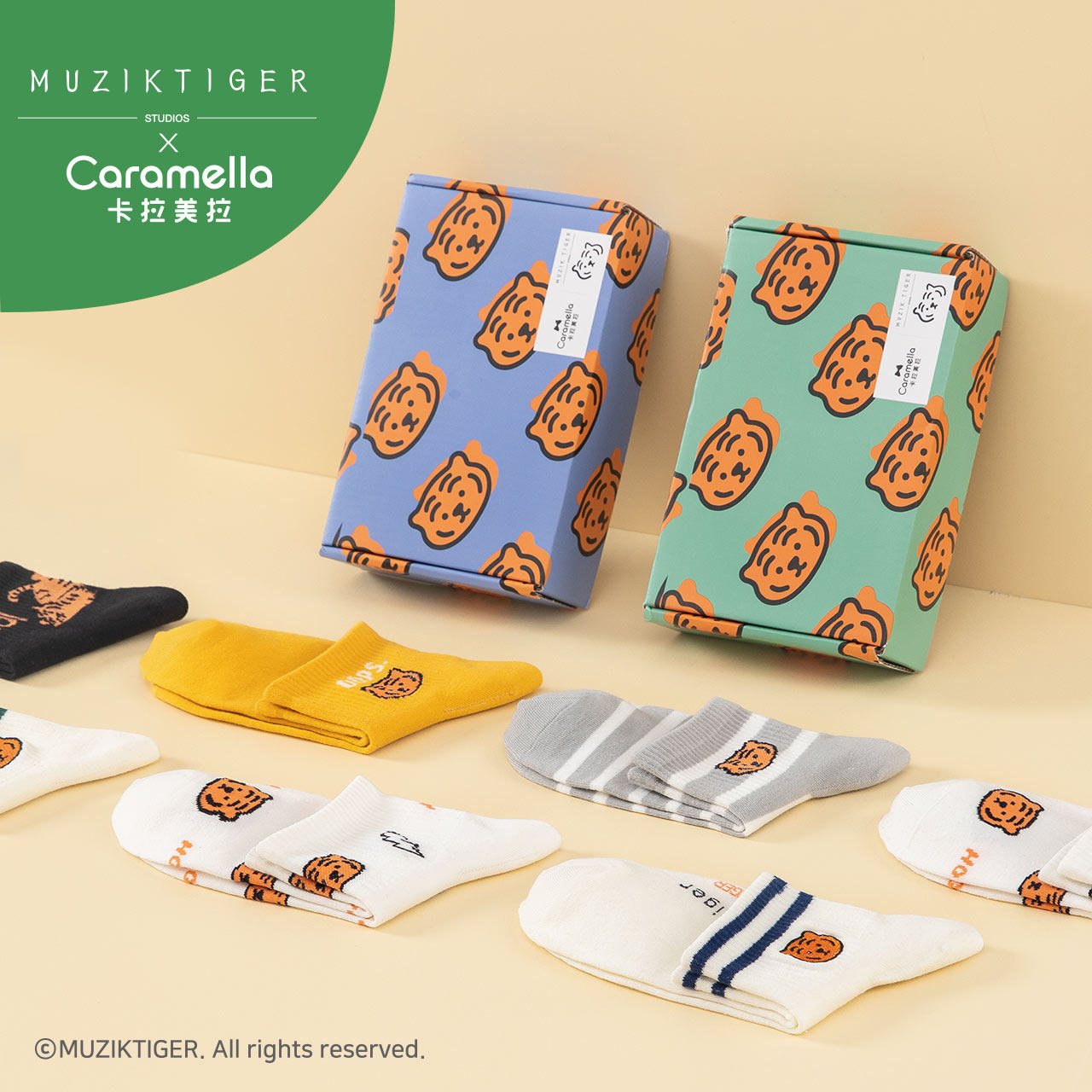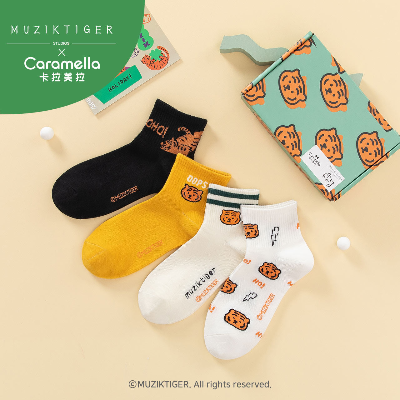 Caramella Tiger Co -Brice Nops Socks Мужские весенние и летние короткие носки, женские не -сласти