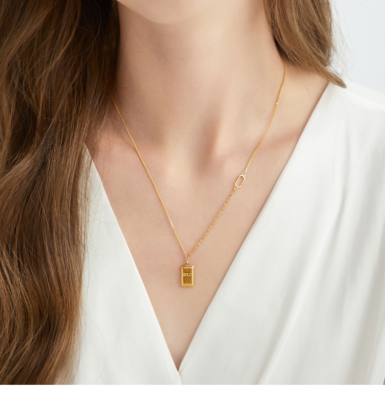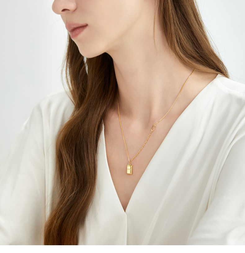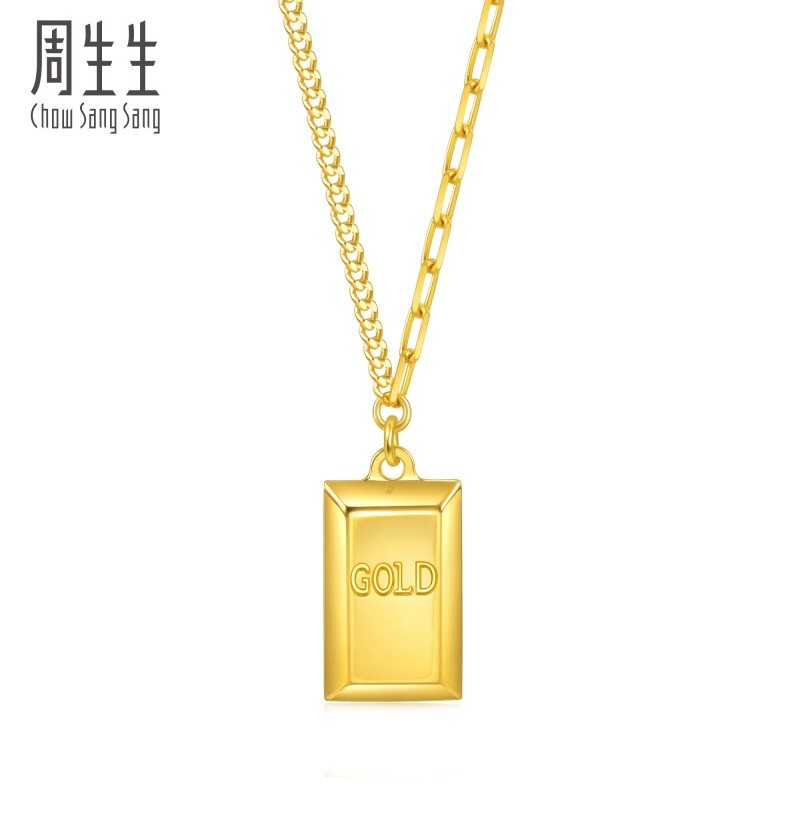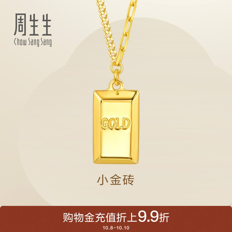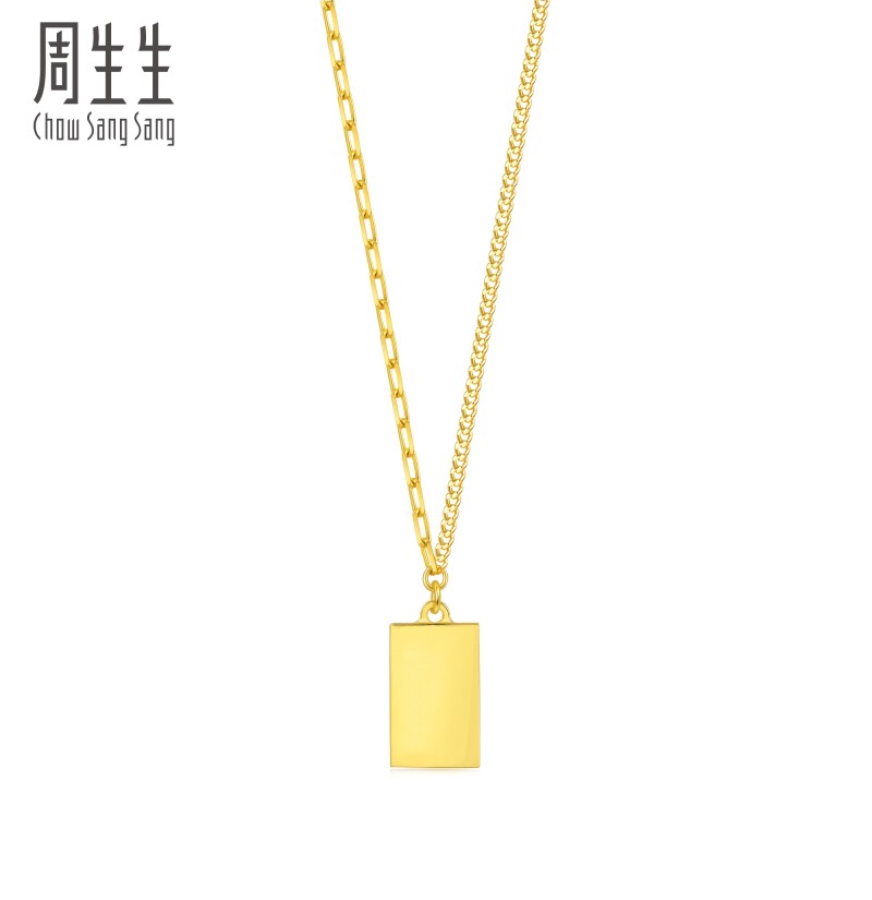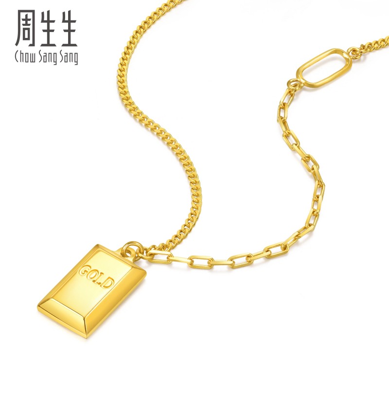 周生生 Essence Yong 5G маленькое золотое ожерелье в форме кирпича золотое ожерелье маленький золотой слиток золотая цепочка 93534N