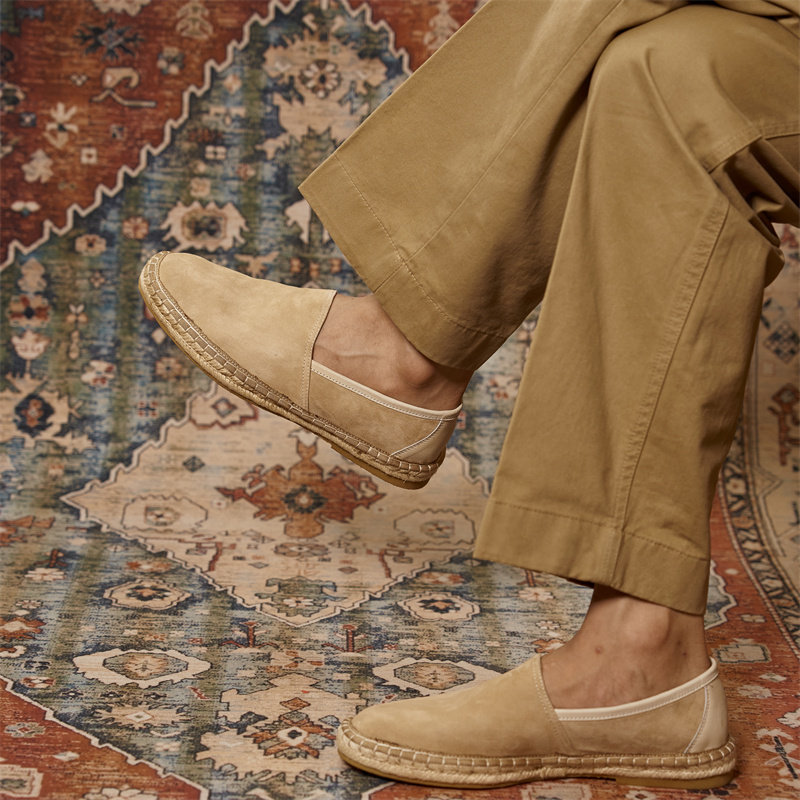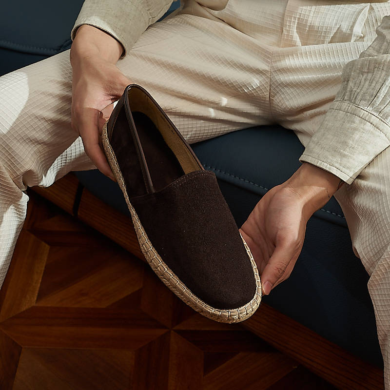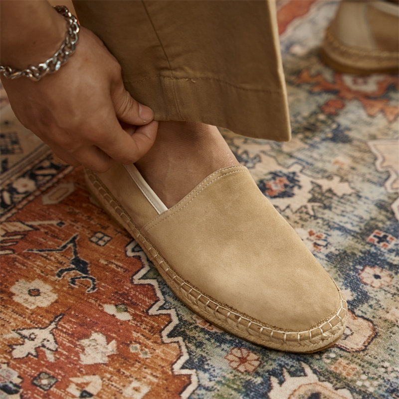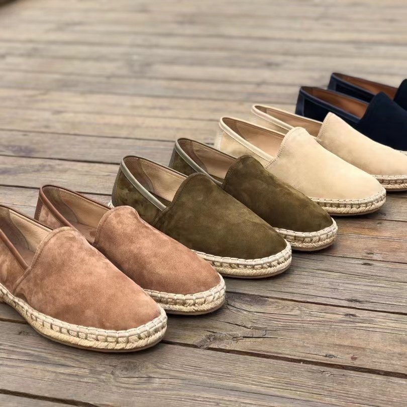 Летние соломенные комфортные туфли для отдыха, лоферы, из натуральной кожи