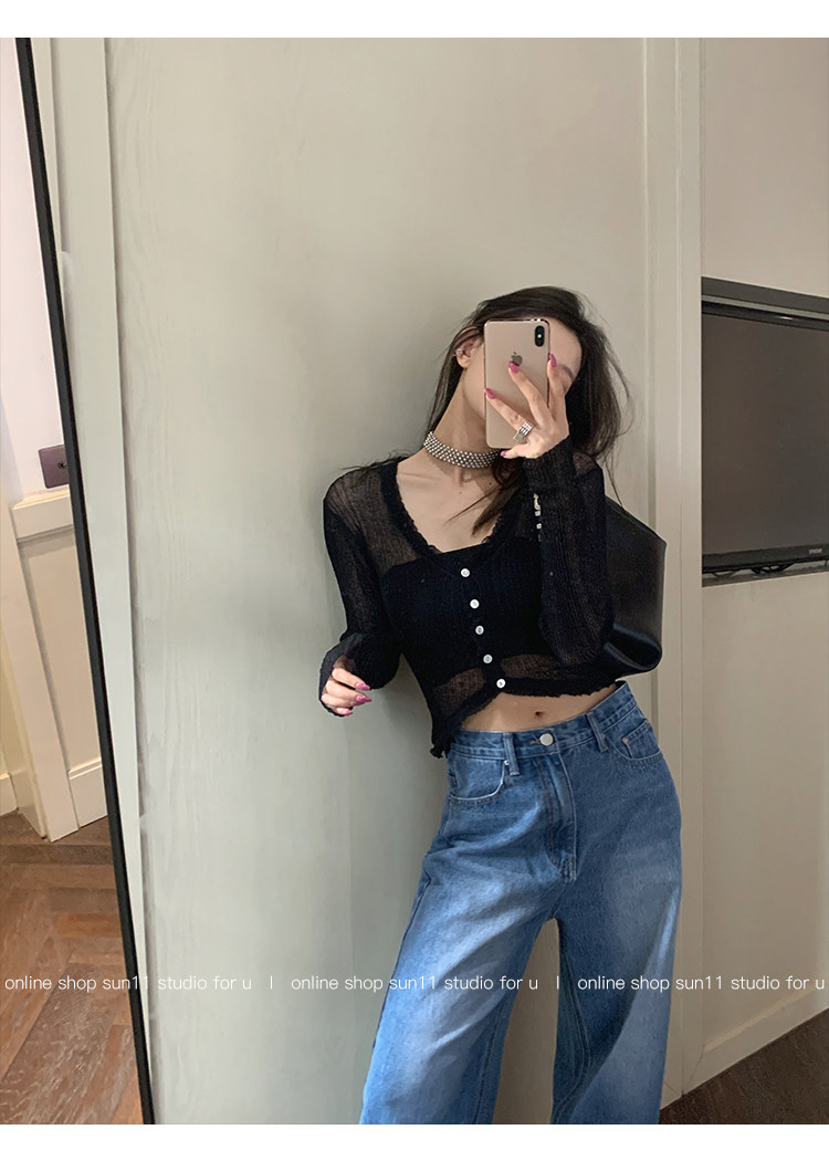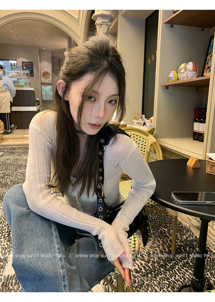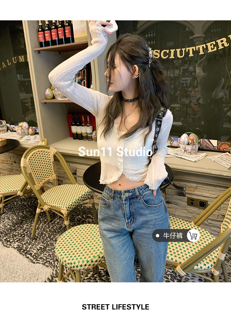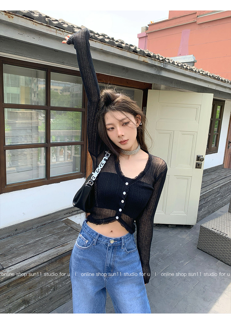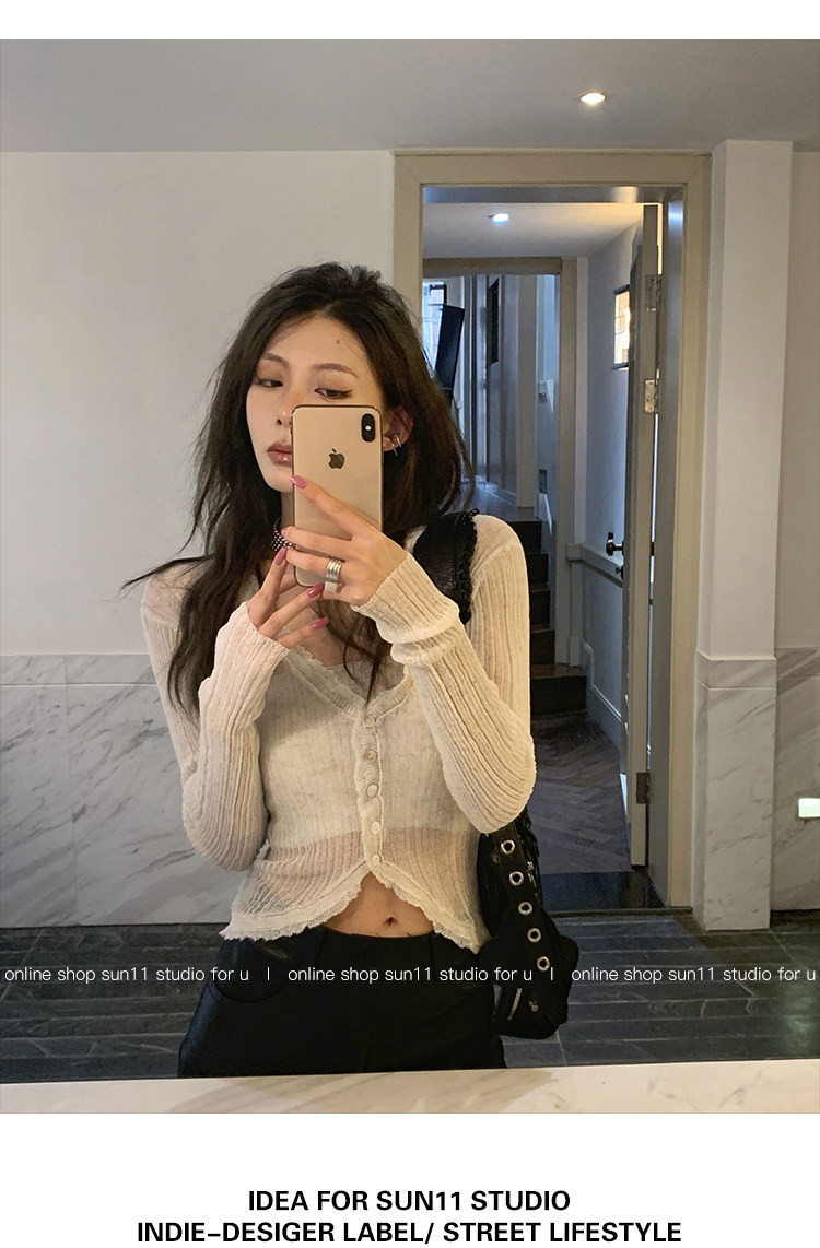 Шелковый весенний кардиган, короткий трикотажный лонгслив, тренд сезона, V-образный вырез, облегающий крой, 2023
