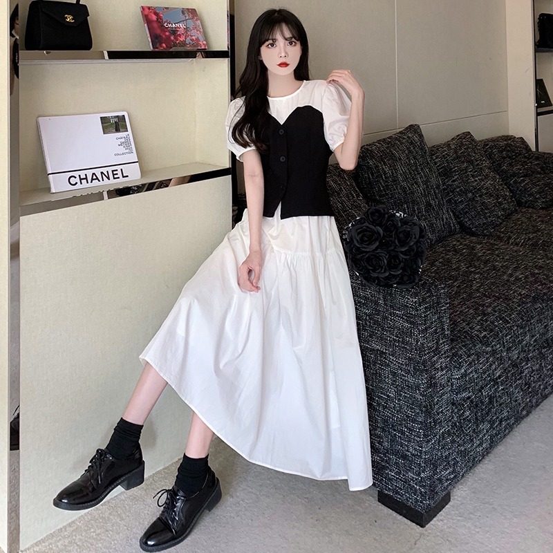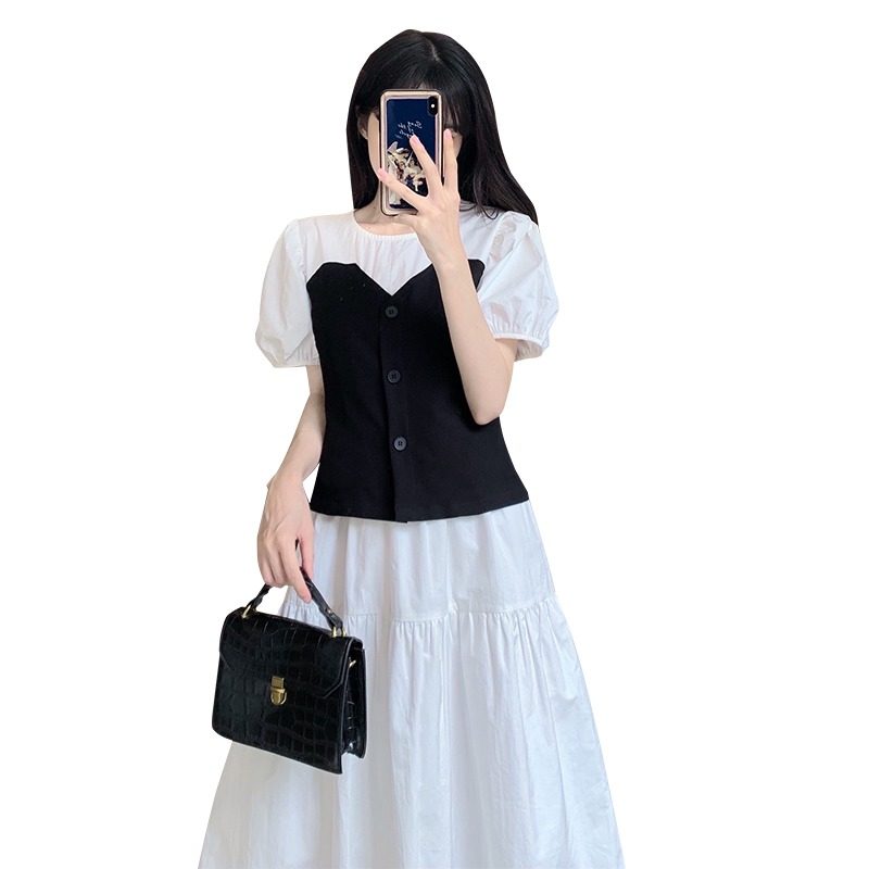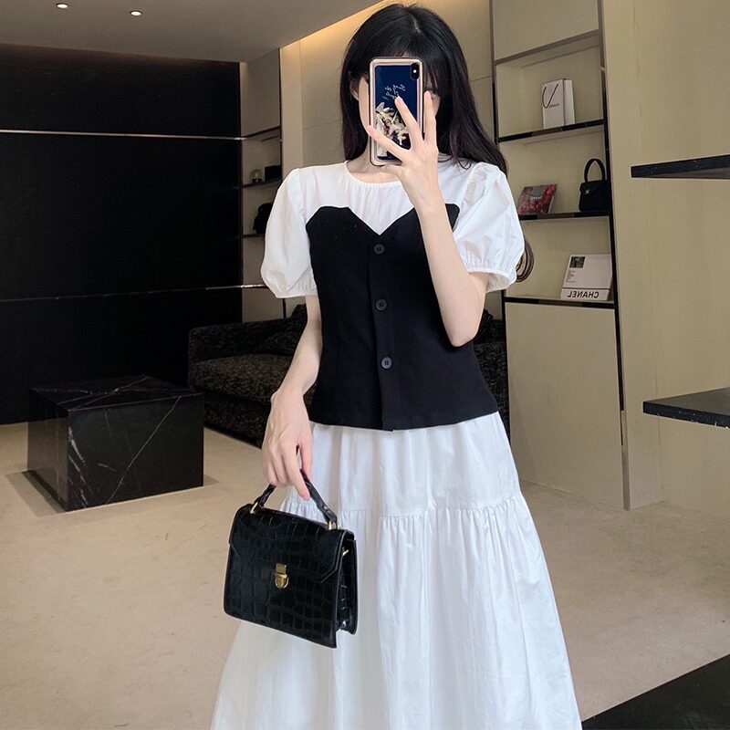 Летнее платье, дизайнерская юбка, приталенный комплект, корсет, тренд сезона, рукава фонарики