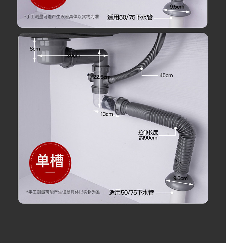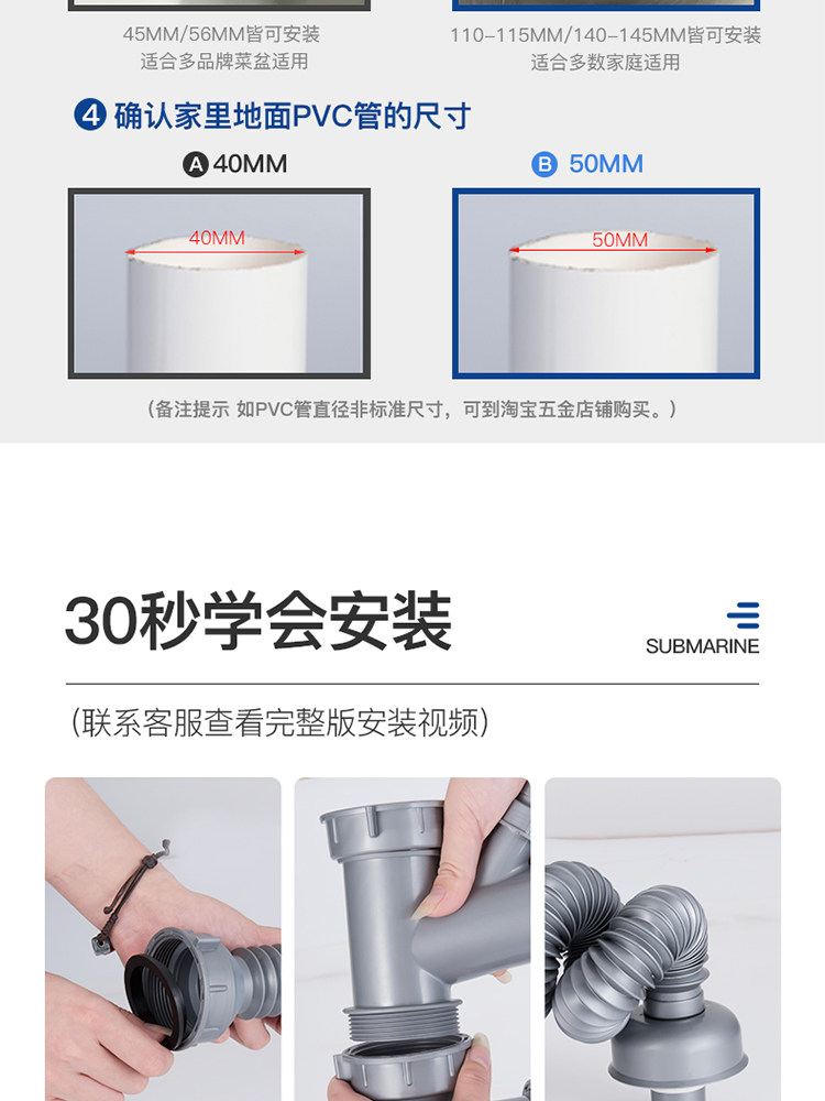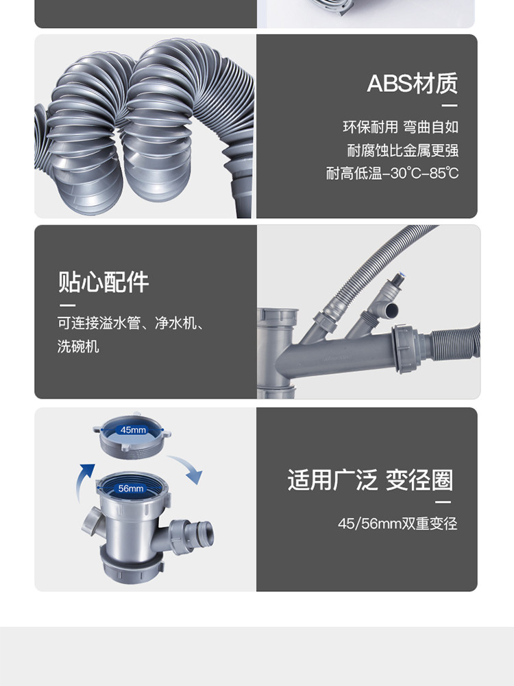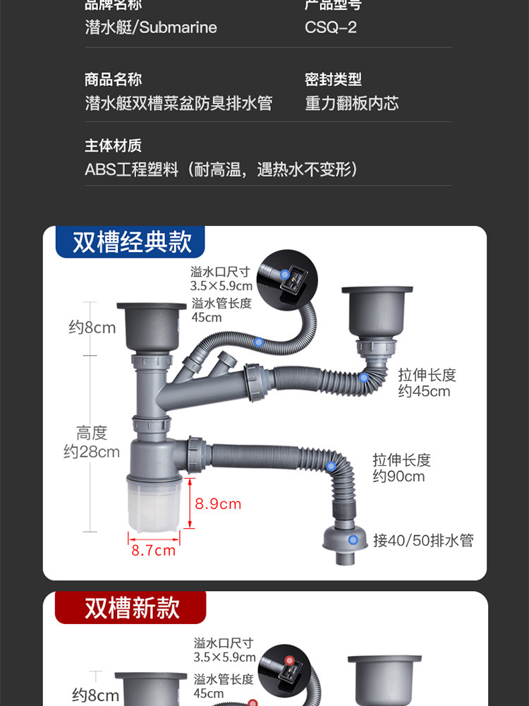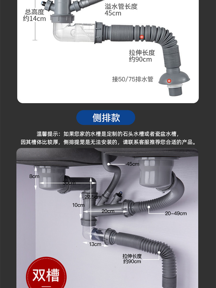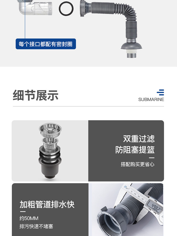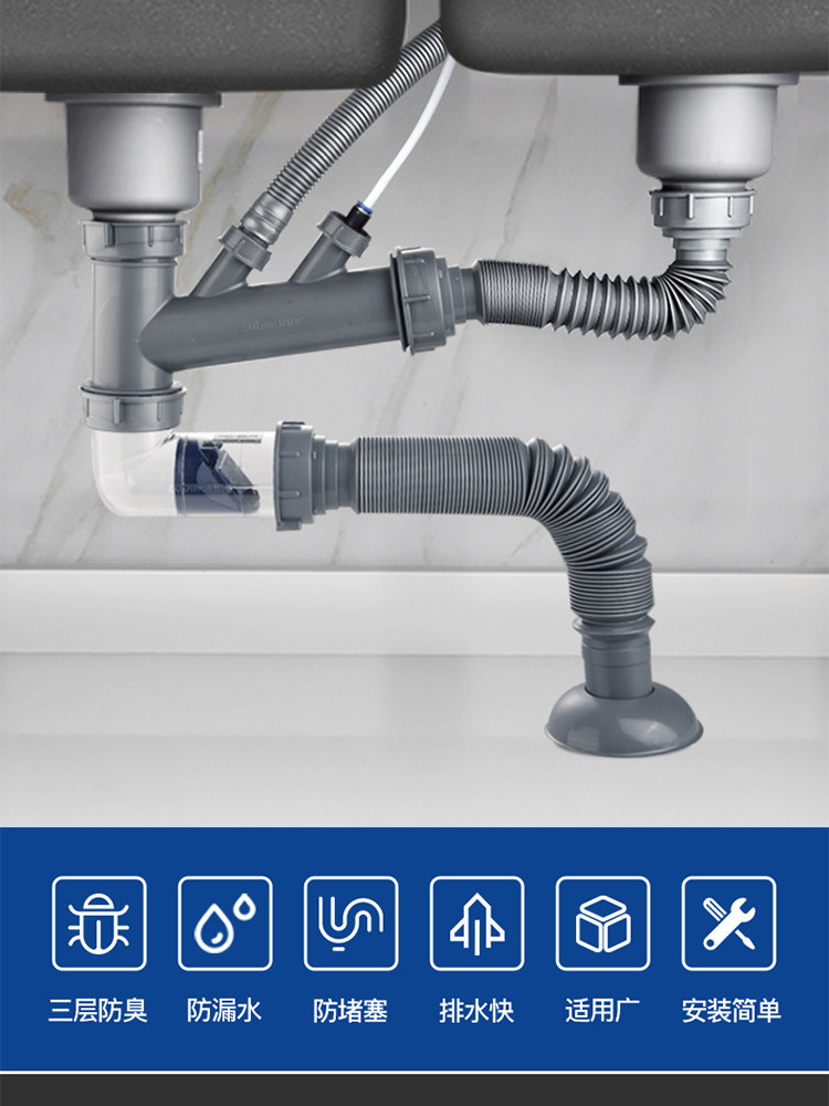 Подводная кухонная раковина Shuangwa Basin Basin Subwater Accessories Peork Plive Tack под водным каналом установлена двойная дренажная труба