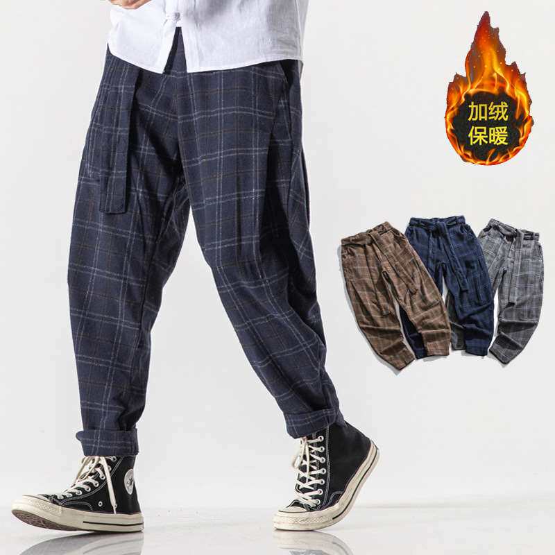 Плюс бархатный густой прямой шерстяной шерстяные брюки мужские брюки