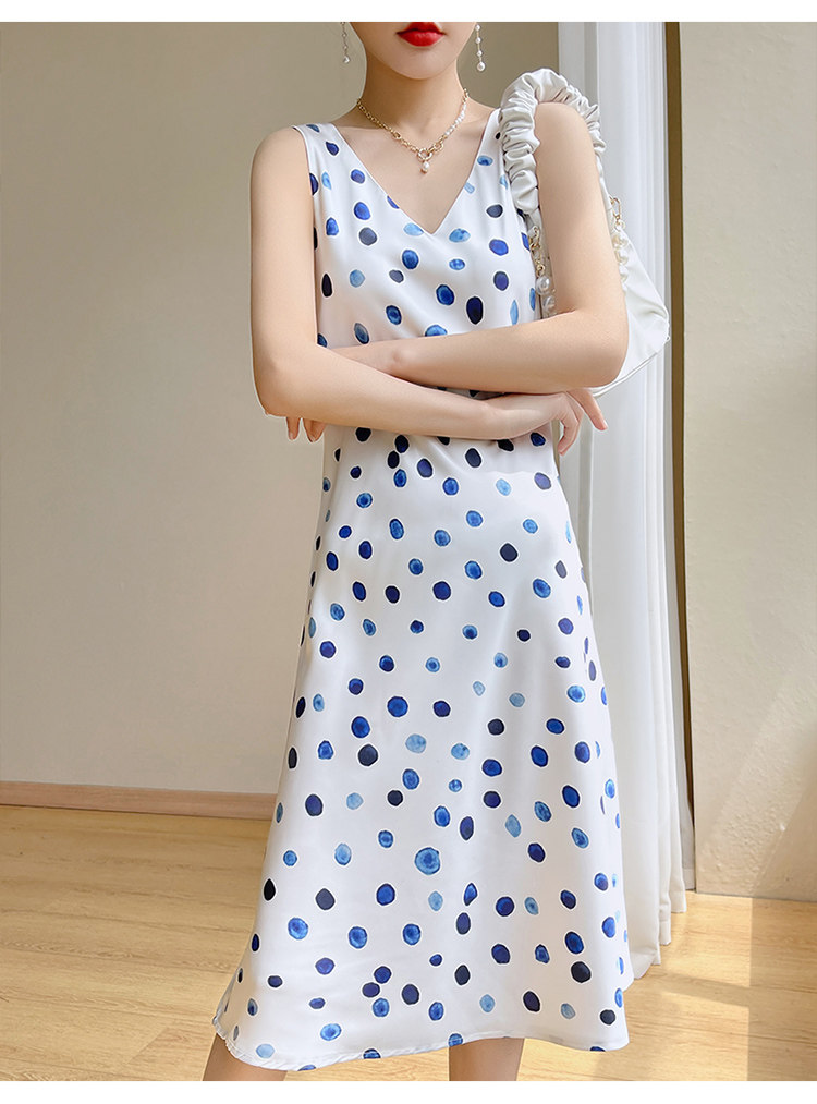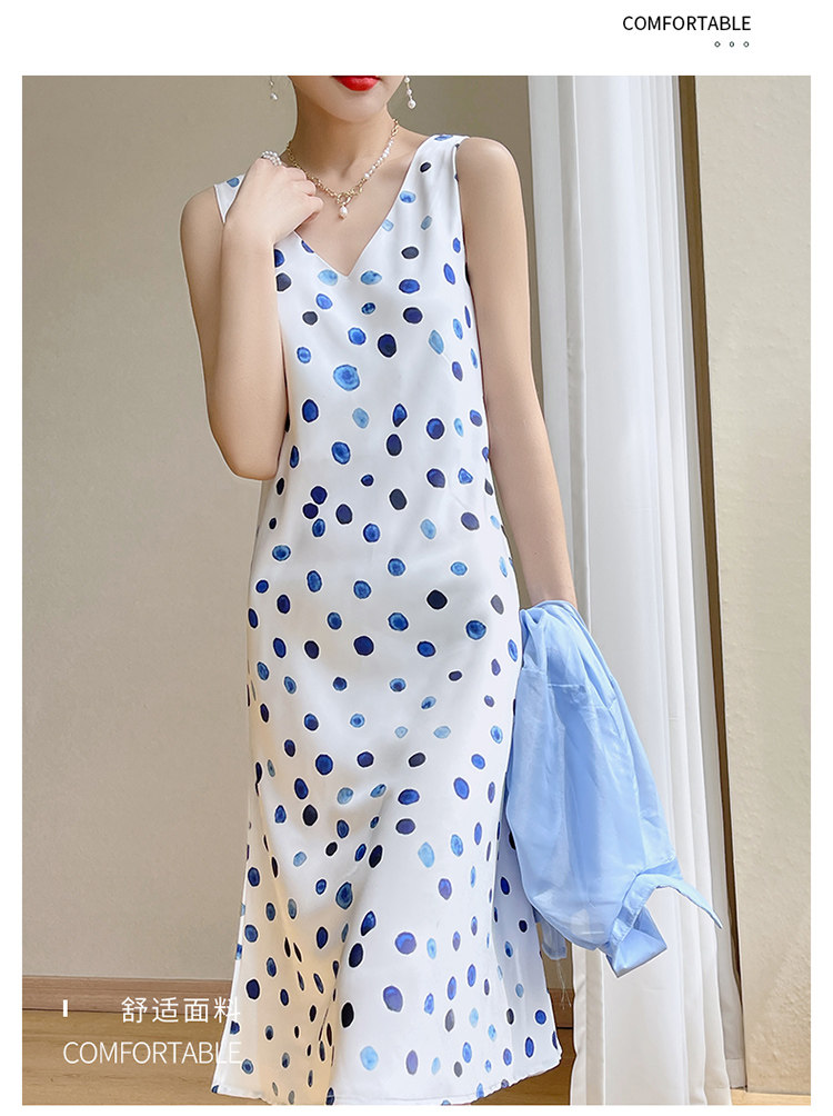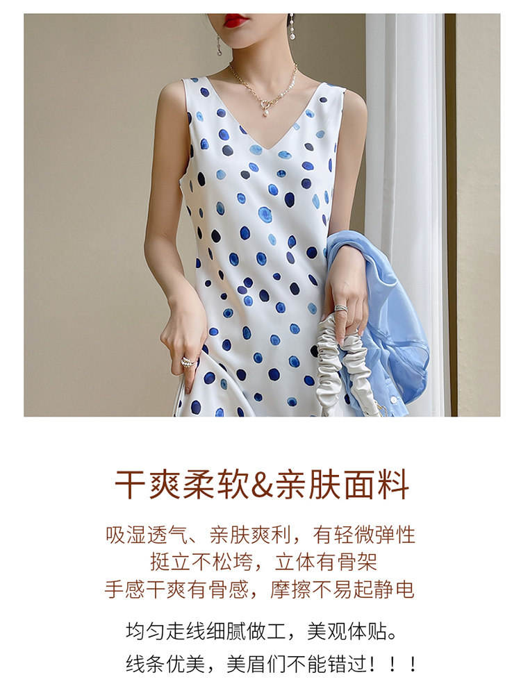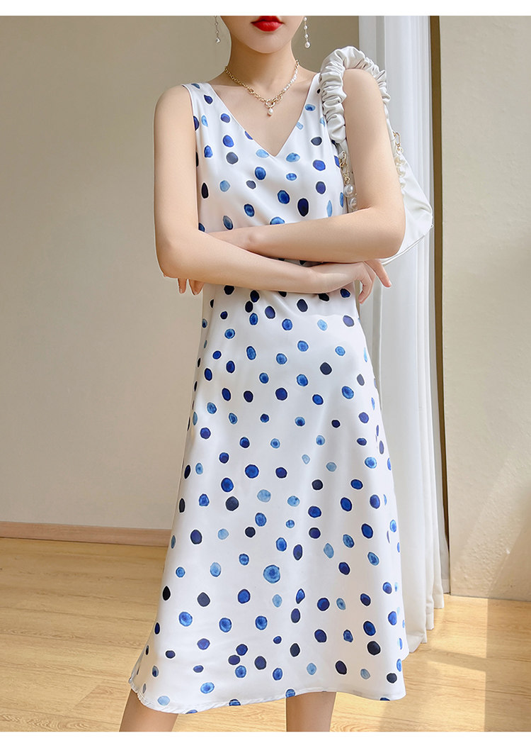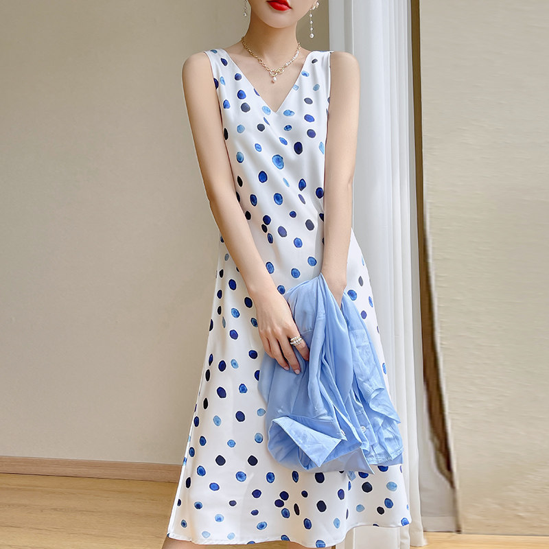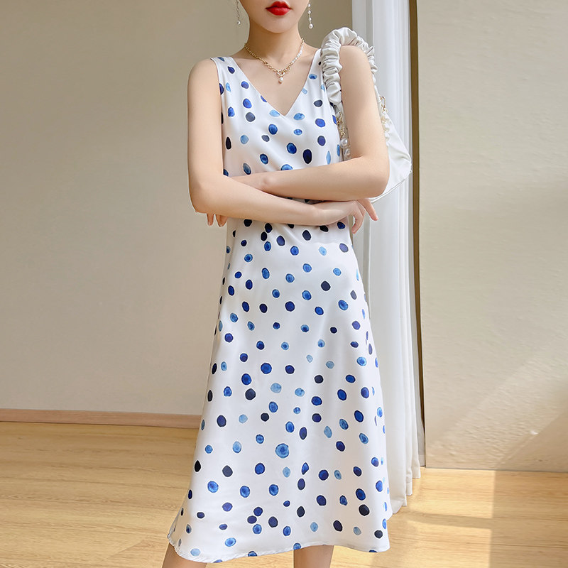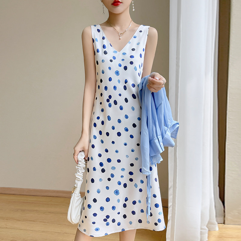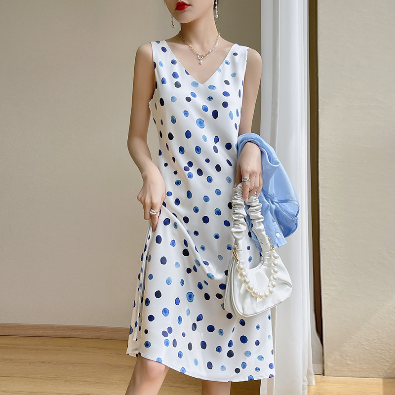 Шелковое платье без рукавов, ретро летняя юбка без рукавов, V-образный вырез