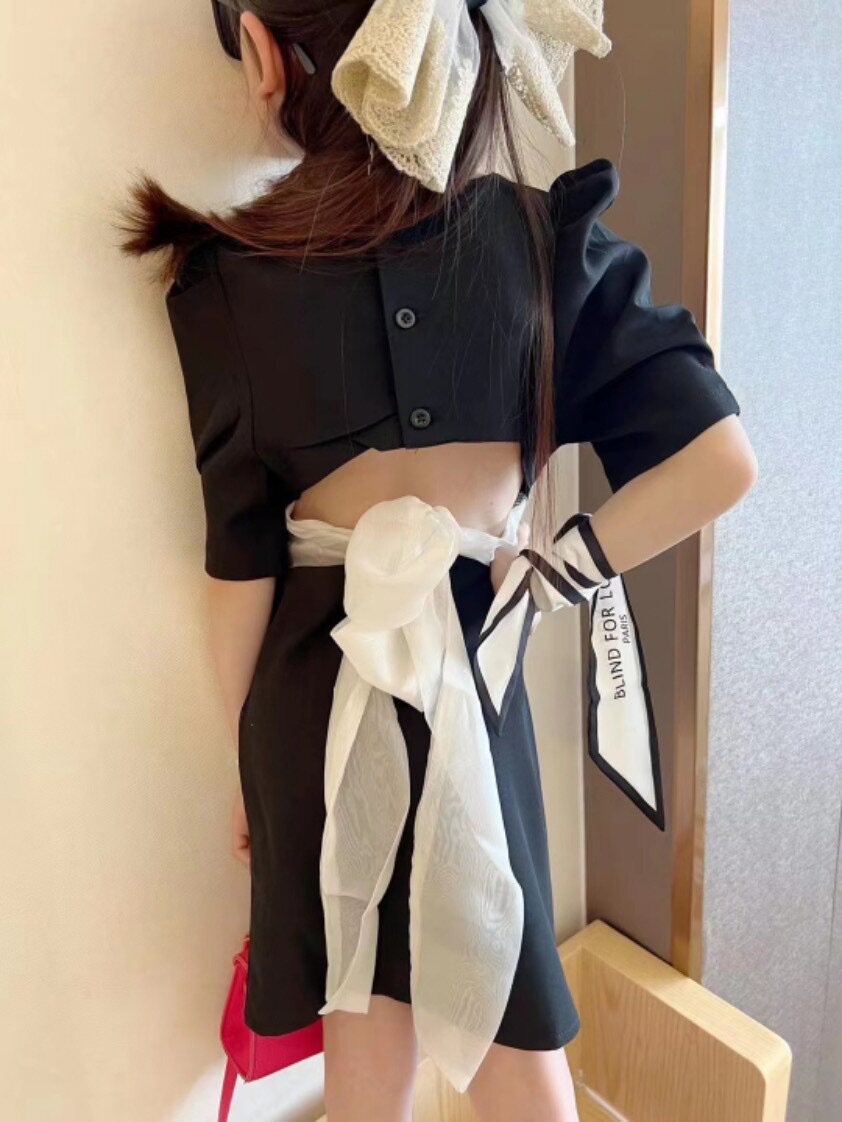 Летний приталенный корсет с бантиком, вечернее платье, французский стиль, с открытой спиной, квадратный вырез, рукава фонарики
