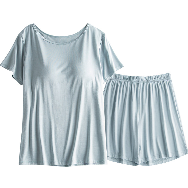 Летняя пижама, тонкий цветной комплект, топ с чашечками, сшита из модала, короткий рукав