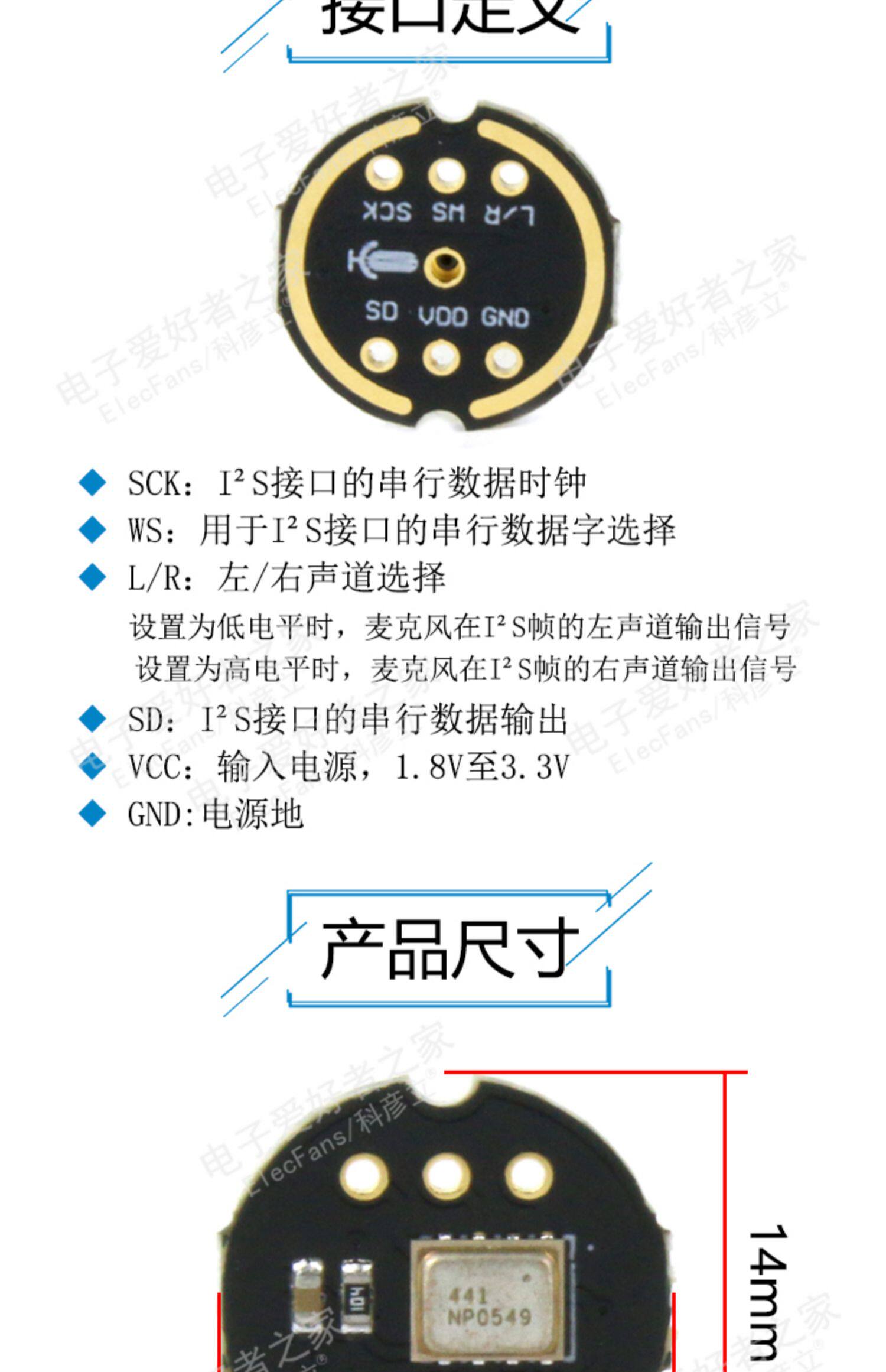 INMP441 Полно -направляющий микрофон модуль MEMS Датчик MI HEAD ESP32 驻 I I I I I I I I