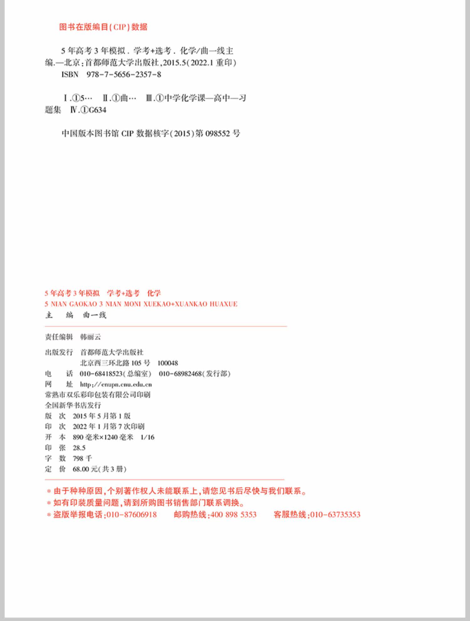 QU № 1 Линия 2023A издания Пять -Вступительный экзамен в колледже и три годы имитационного вступительного экзамена в колледже Пятисторонний вступительный экзамен в колледже Химия Чжэцзян Химическая средняя школа Обзор средней школы Полный набор консультации по средней школе 53 Вступительный экзамен в колледже National Vol.