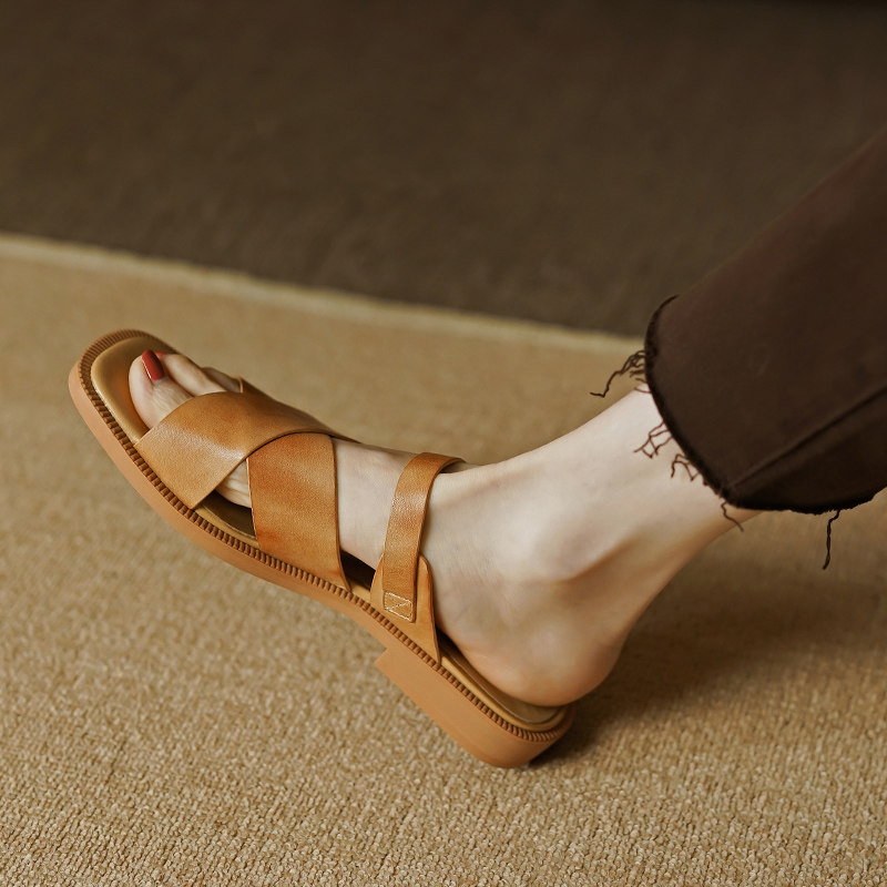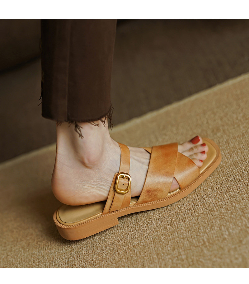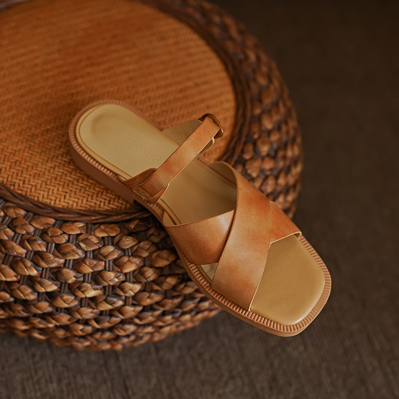 Туфли, тапочки, обувь, слайдеры, сандалии, коллекция 2023, из натуральной кожи
