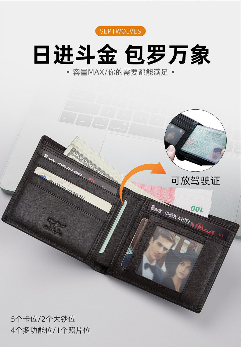 Septwolves, короткий бумажник для водительских прав, кошелек, из натуральной кожи, подарок на день рождения