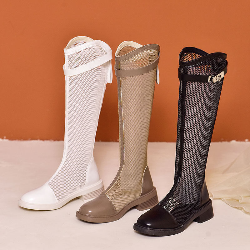 Модные тонкие весенние сетчатые высокие сапоги с молнией