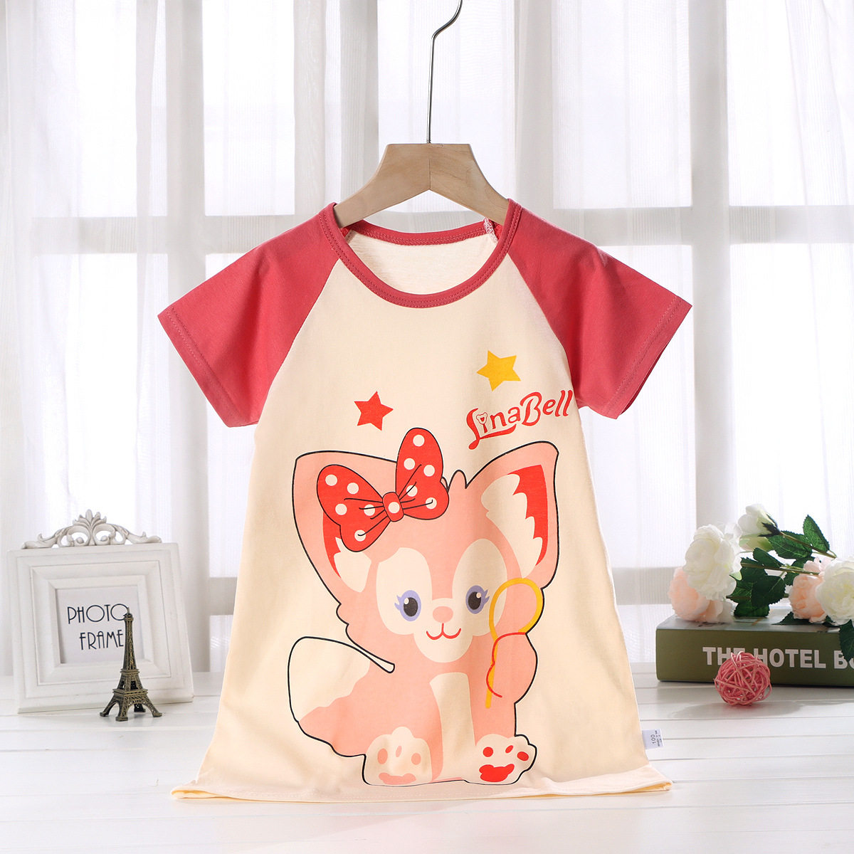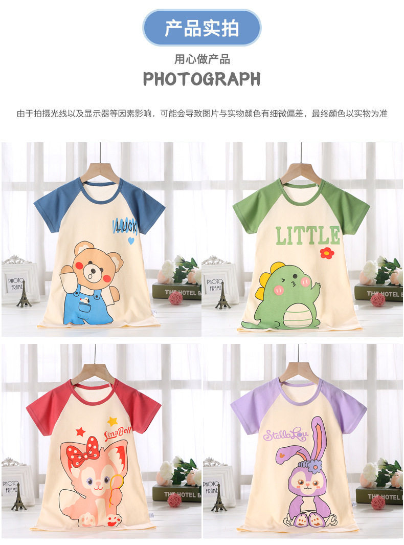 Хлопковая летняя тонкая детская пижама, короткий рукав, оверсайз