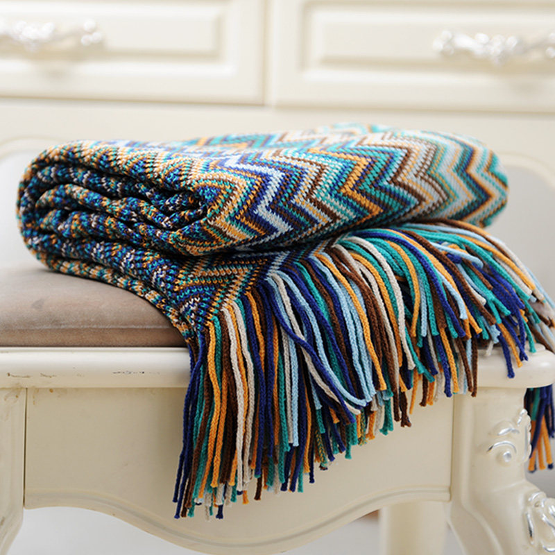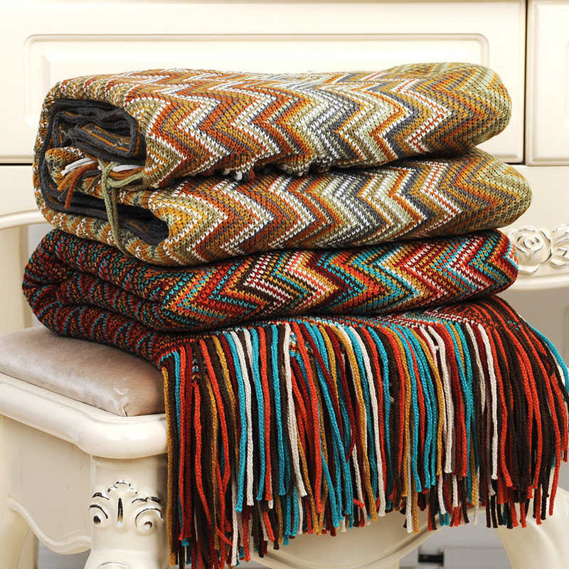 Одеяло, трикотажная накидка для сна, диван, стиль бохо