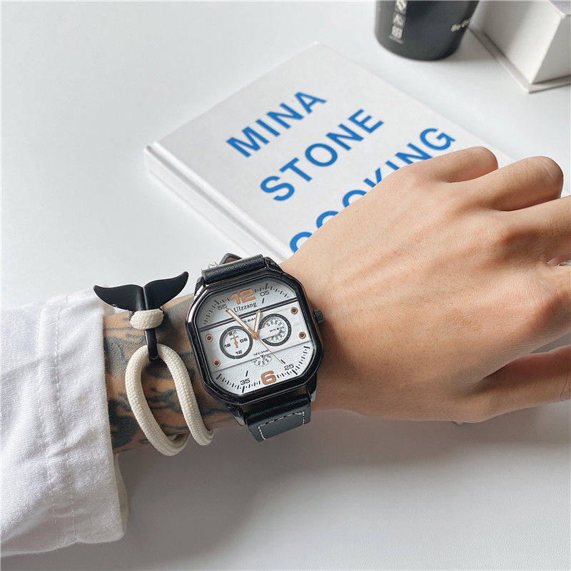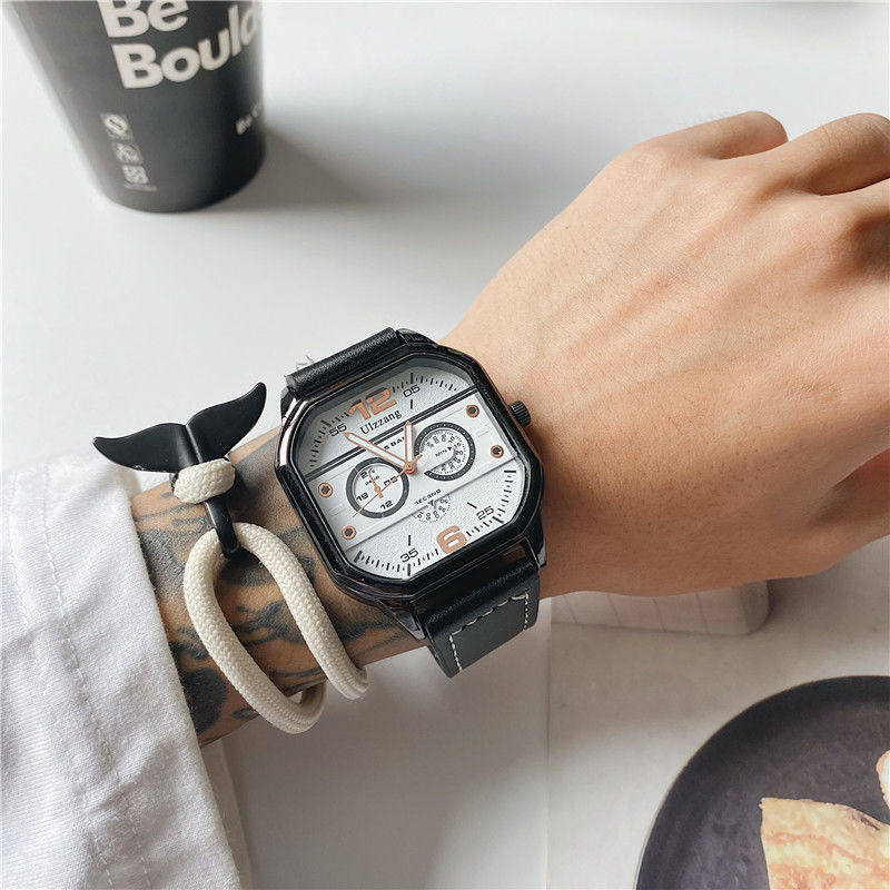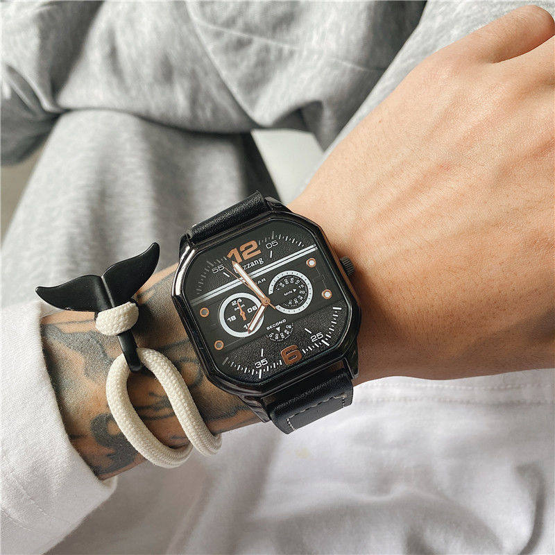 Трендовые мужские часы, черный неоновый квадратный циферблат, для средней школы, подходит для подростков