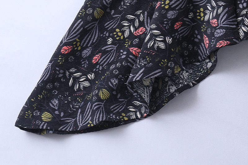 Осеннее вельветовое длинное платье, цветочный принт, рыбий хвост, средней длины, А-силуэт