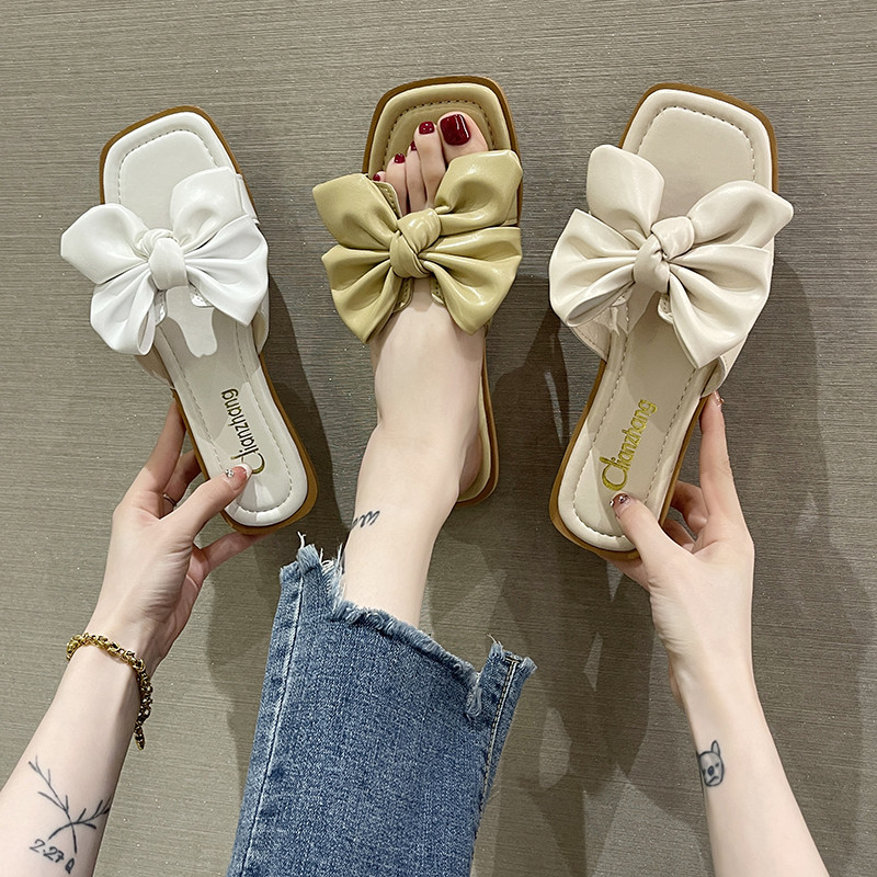 Тапочки, обувь, слайдеры с бантиком, 2022, популярно в интернете, в цветочек
