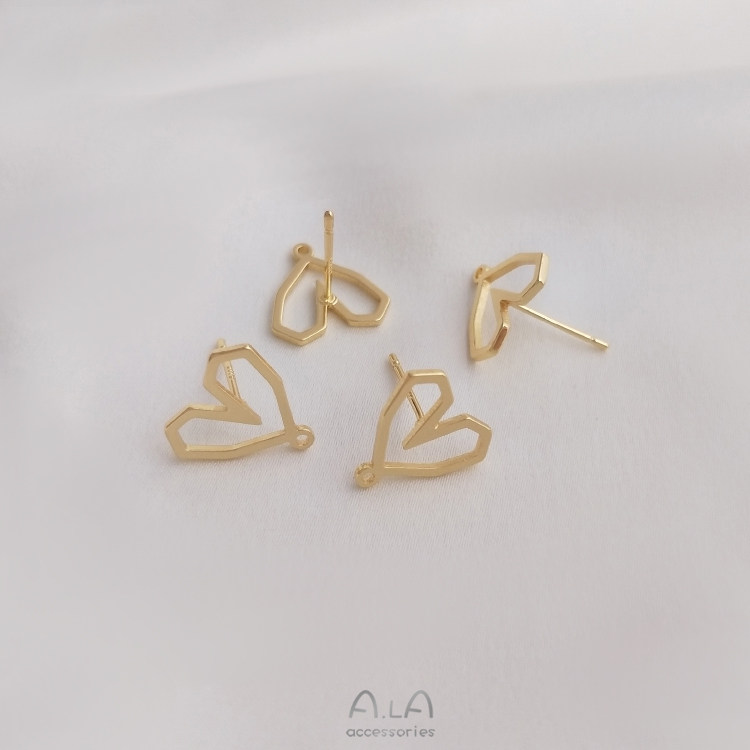 Геометричное украшение в форме сердца, серьги ручной работы, 14 карат, золотой цвет, серебро 925 пробы, DIY