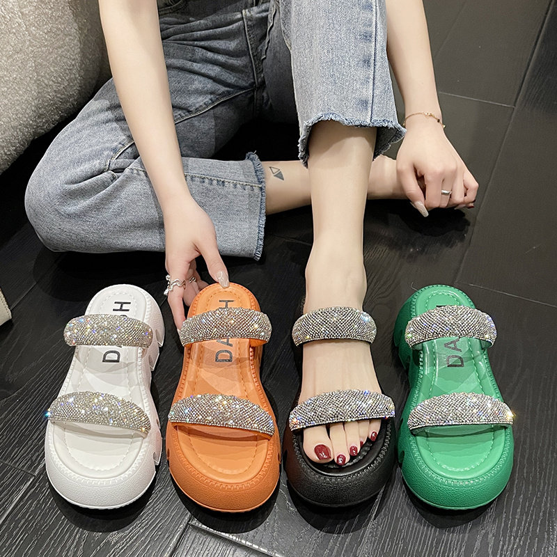Тапочки, летняя обувь, пляжные слайдеры на платформе, в корейском стиле