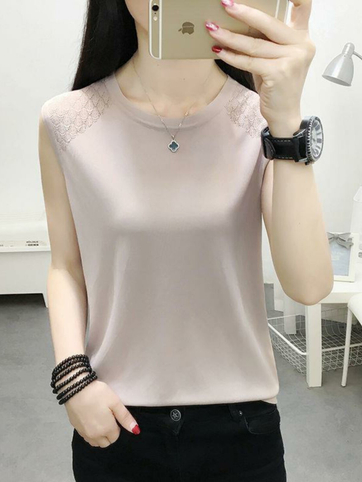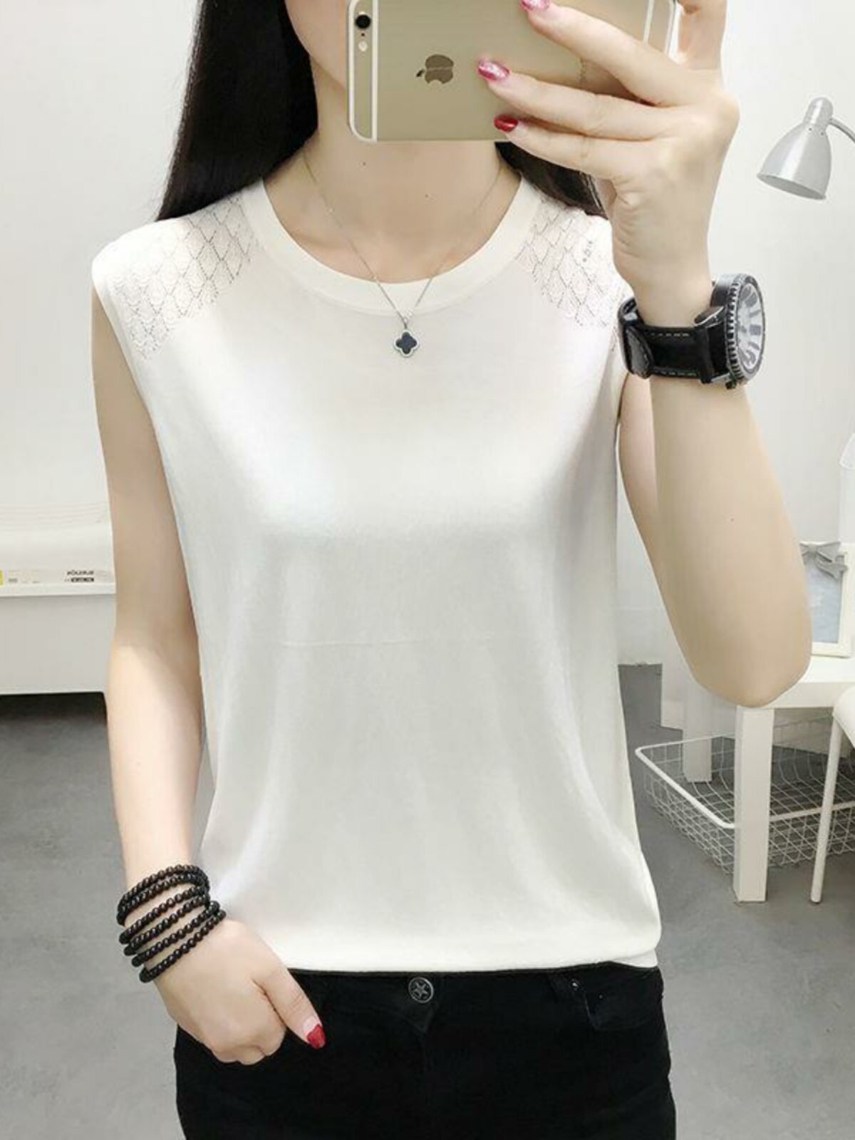 Шелковая майка топ, трикотажная футболка без рукавов, короткий тонкий свитер, свободный крой