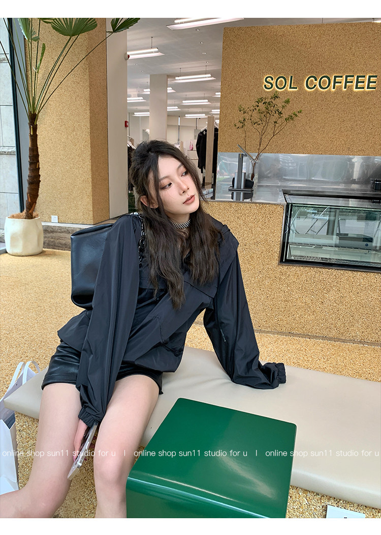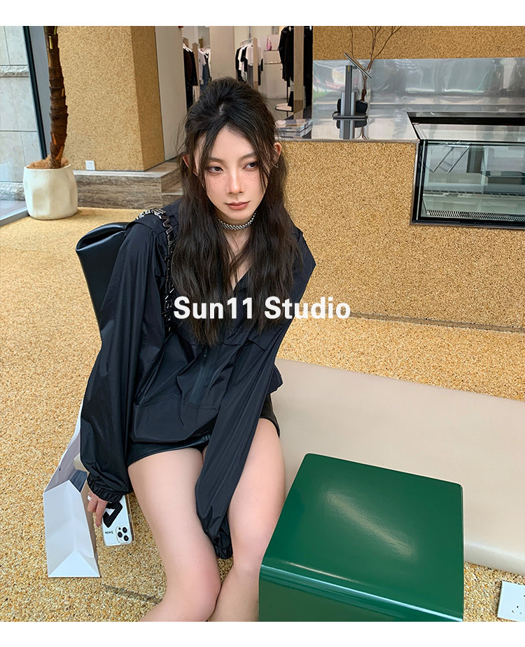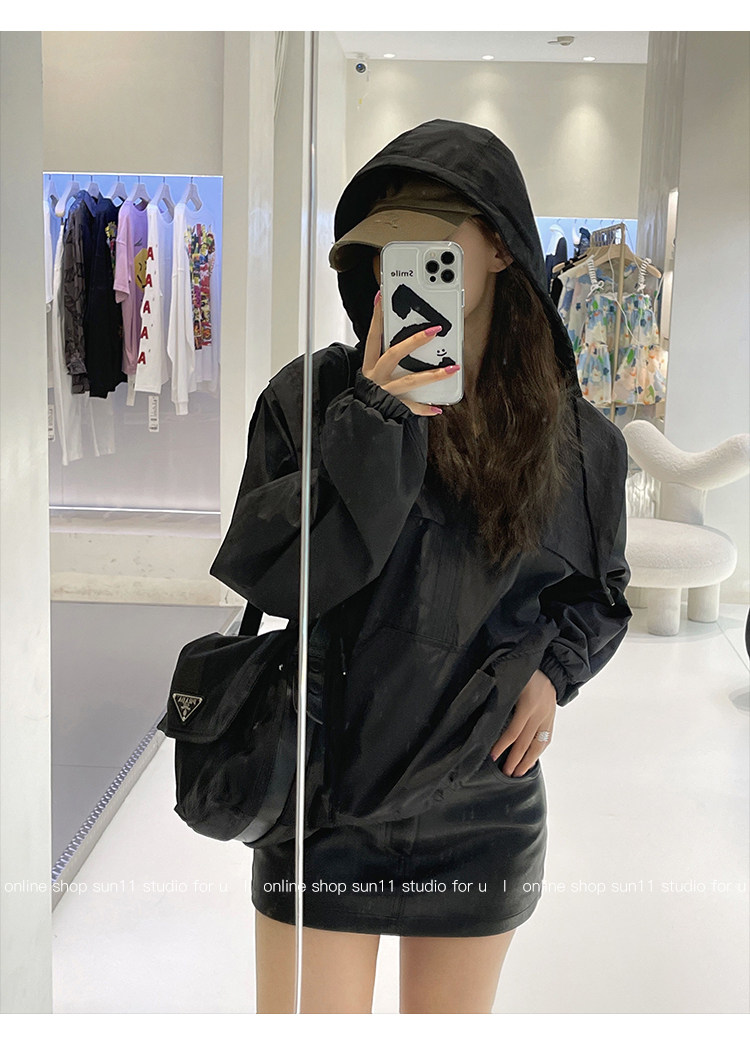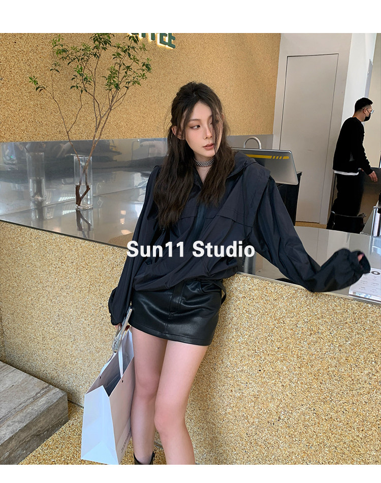 Черная летняя тонкая одежда для защиты от солнца, шифоновый лонгслив для отдыха с капюшоном, куртка, защита от ультрафиолета
