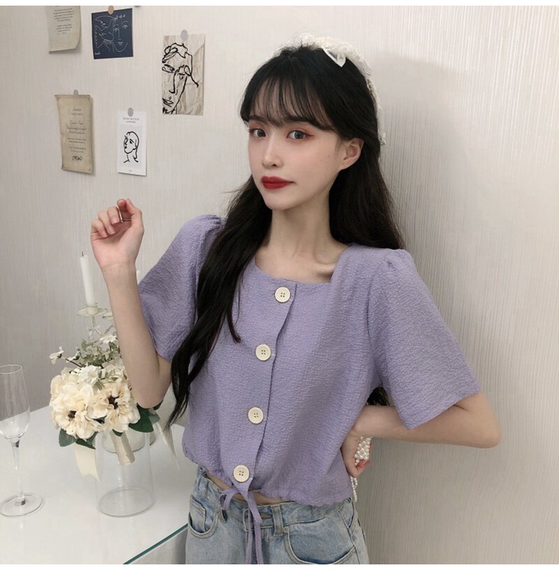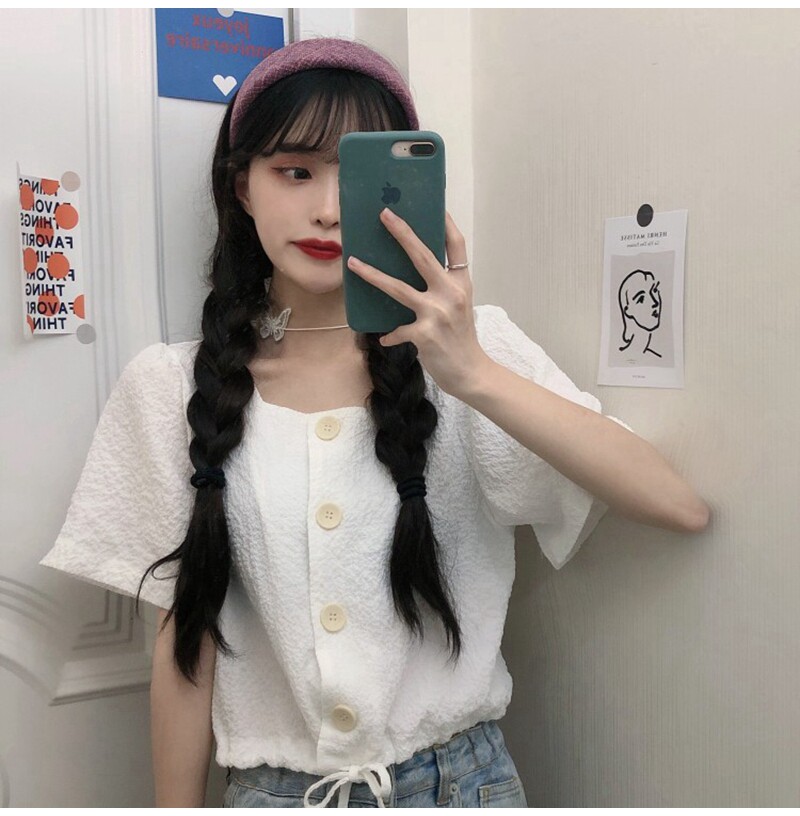 Милая короткая ретро рубашка, большой размер, квадратный вырез, коллекция 2022, городской стиль, подходит для полных девушек, французский ретро стиль