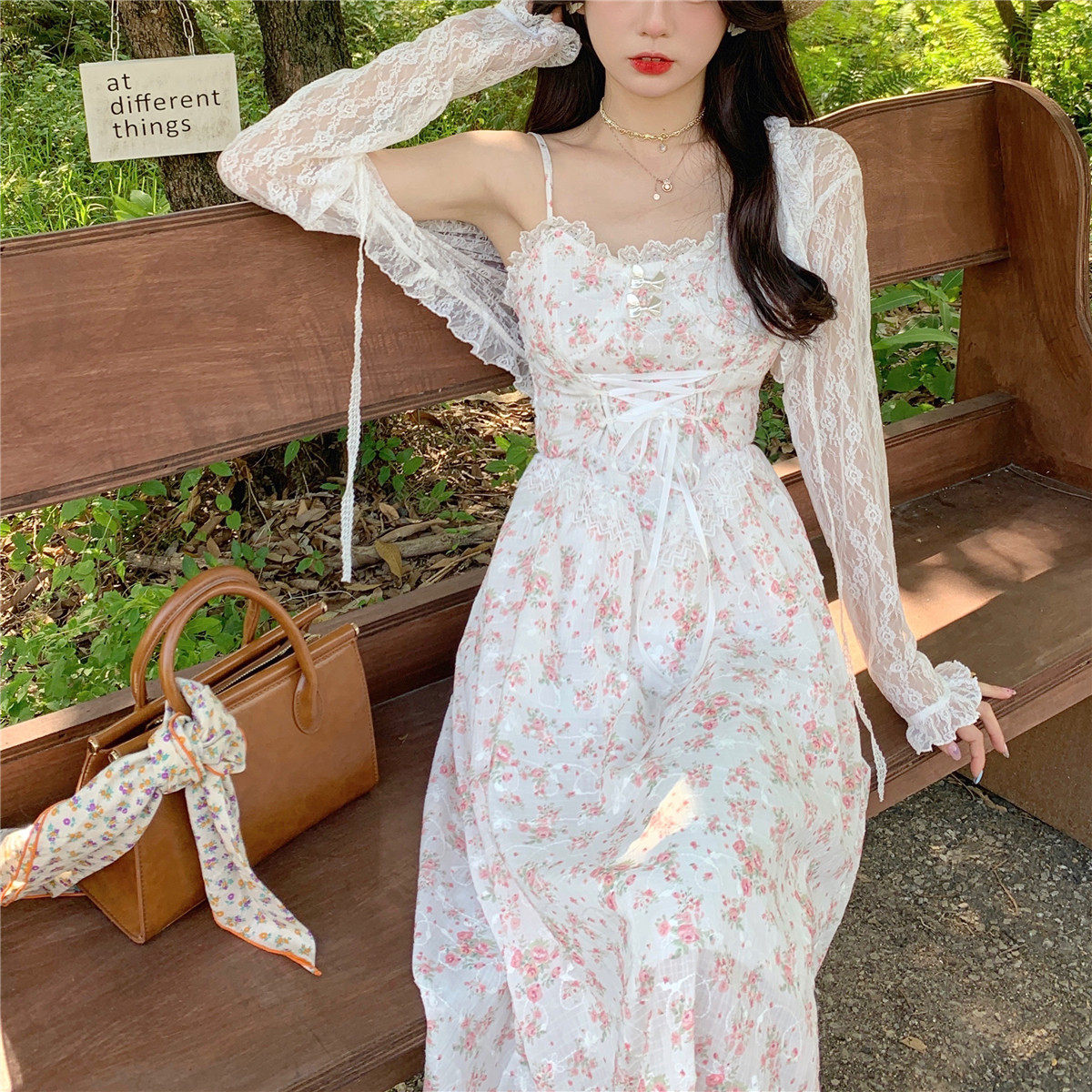 Летнее сексуальное платье, кружевной кардиган, комплект, большой размер, цветочный принт