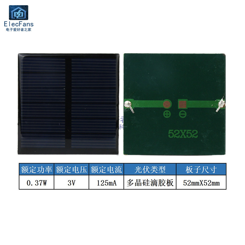 | Цвет: | Без провода 0,37Вт 3В 125мА 52ммХ52мм |