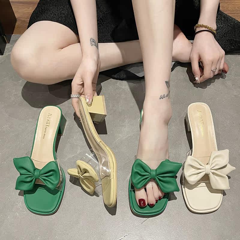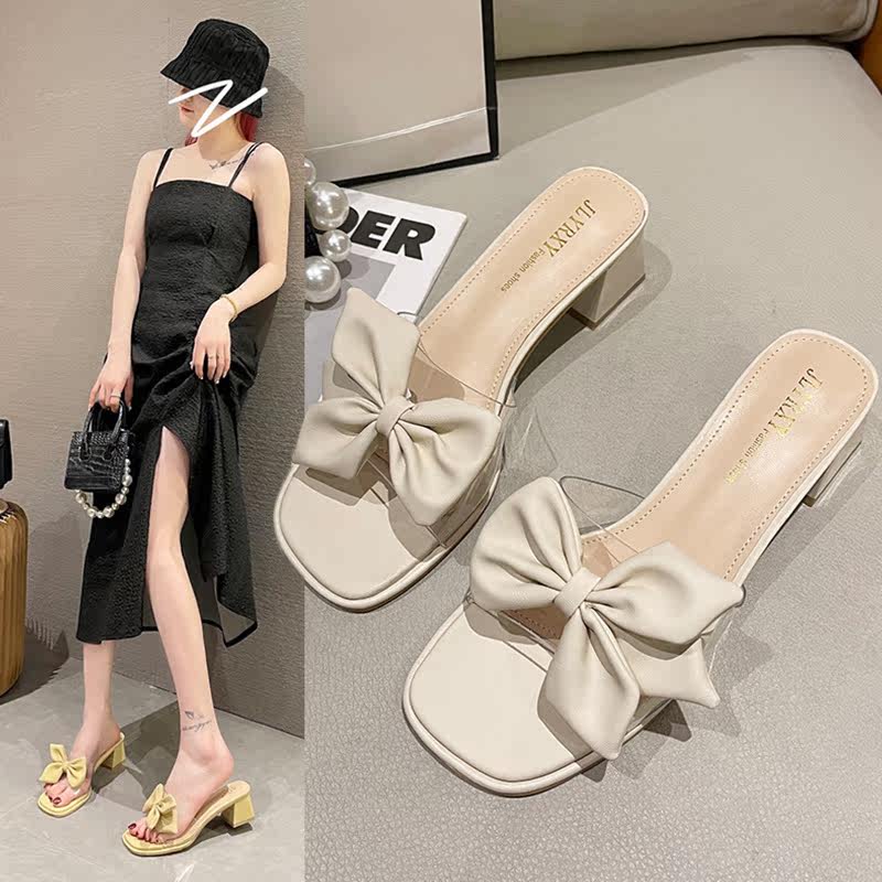 Тапочки с бантиком, обувь, универсальные слайдеры, коллекция 2022, в корейском стиле
