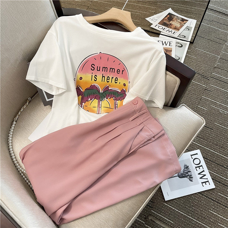 Летний комплект, футболка, штаны, делается под заказ, в западном стиле, высокая талия