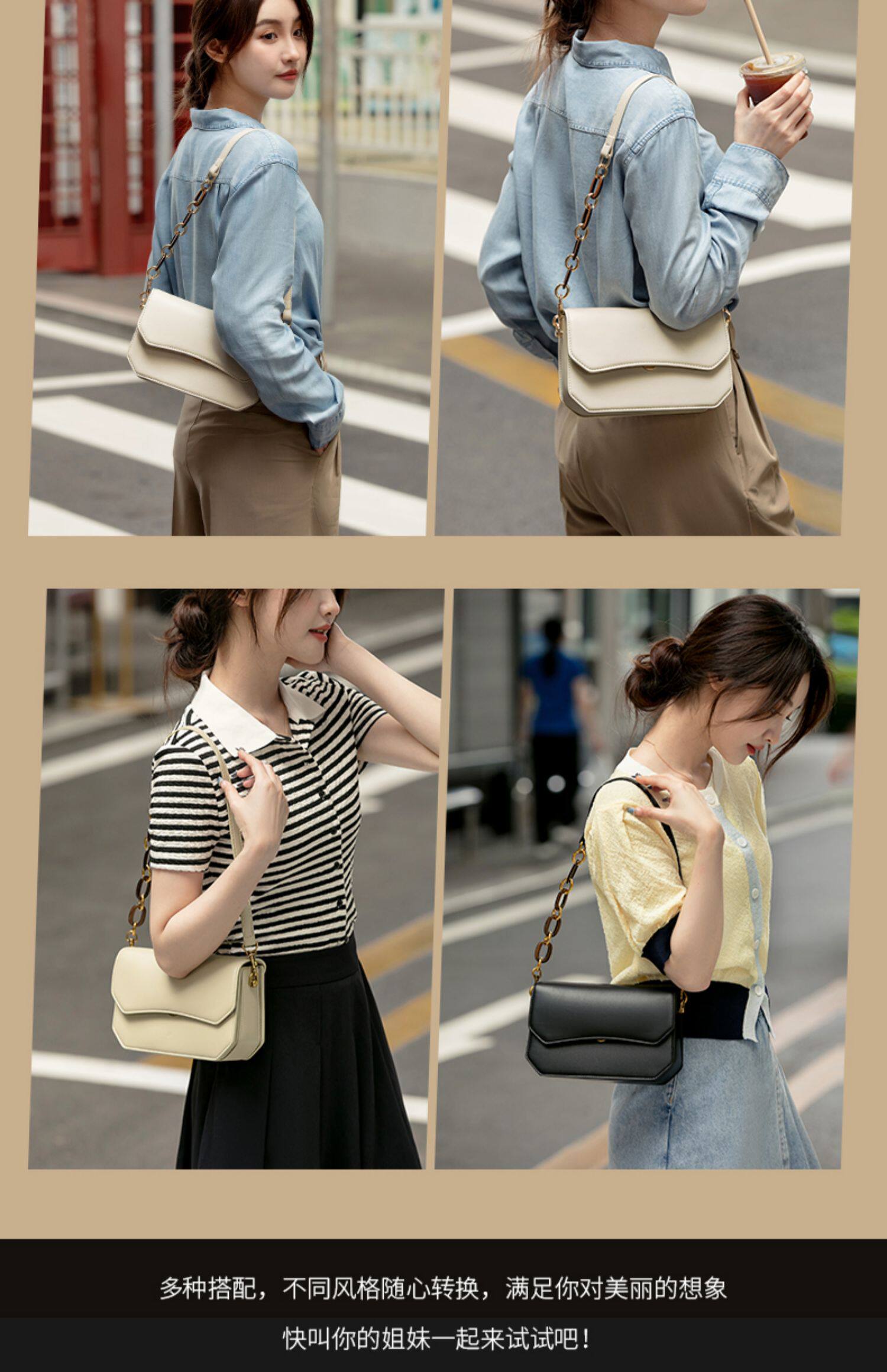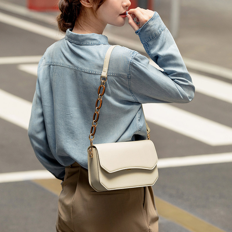 Цепь, сумка через плечо, демисезонная коричневая сумка на одно плечо, белая небольшая сумка, коллекция 2023